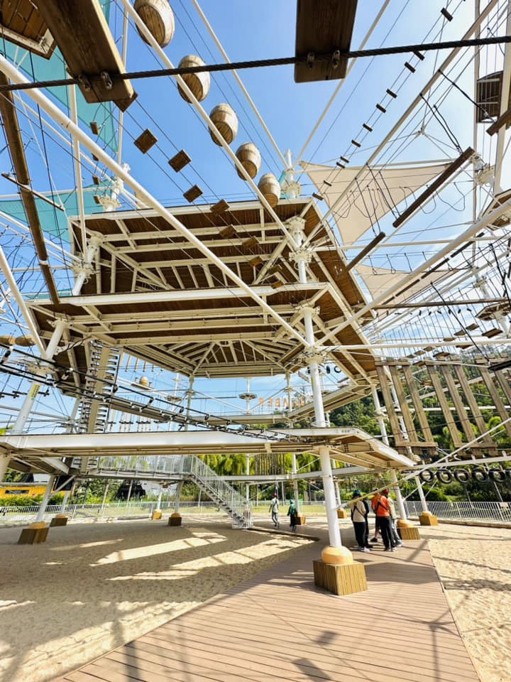 雨豬仔媽媽認為最好玩和有特色的是星奇塔無動力樂園,是以奇幻海洋冒險為主題的親子樂園。園內有12個主題,當中的「深海迷宮」是4層樓高的迷宮,小朋友要選擇那條路線到達滑梯都要花上一段時間,其次「勇氣大本營」是繩索大本營,想爬多高就多高而不用擔心!