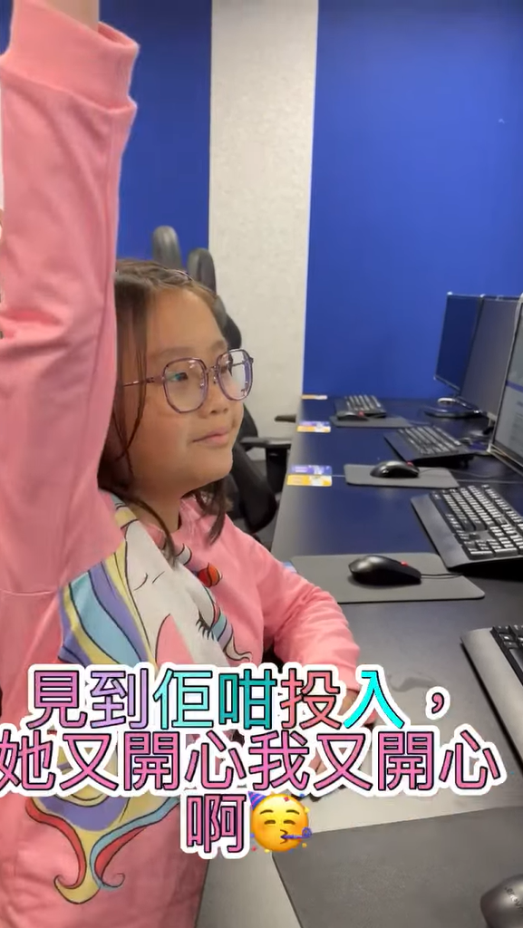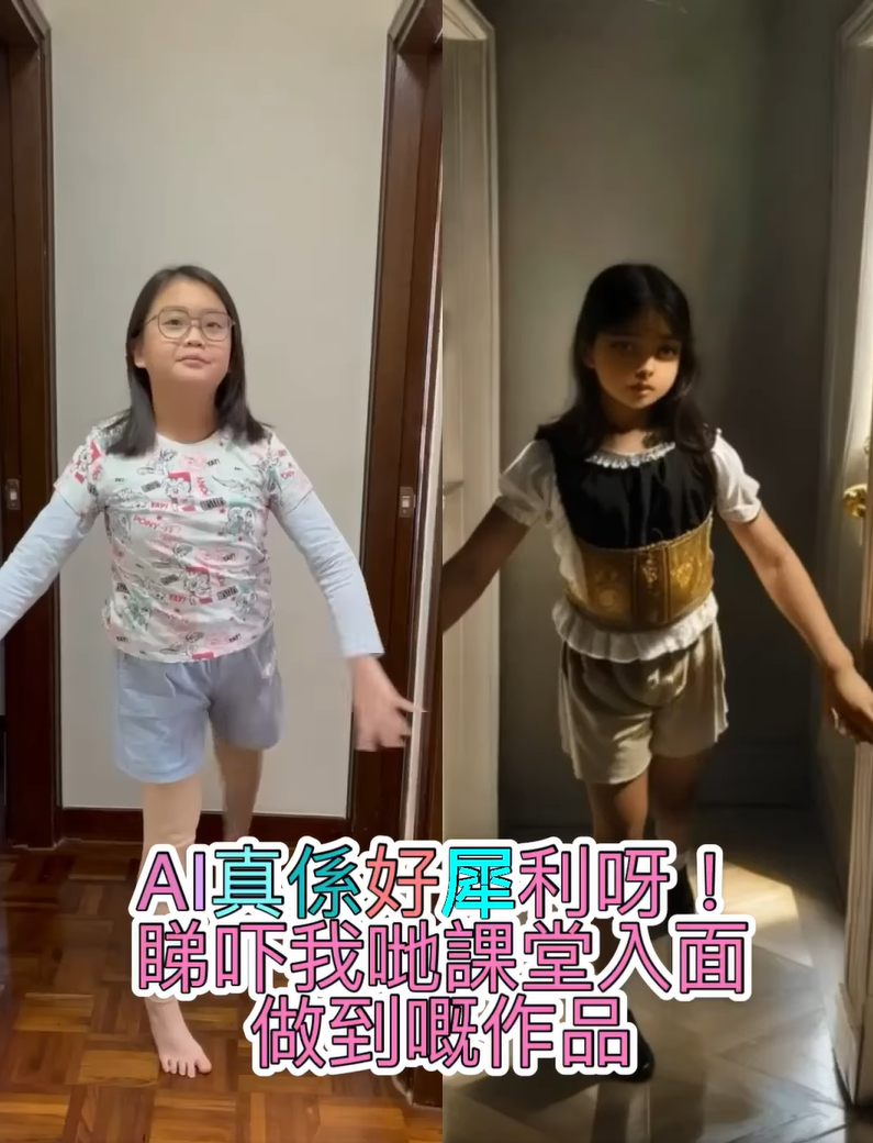 在整個堂中,小朋友最喜歡的是用AI繪圖,除了本身喜歡畫畫外,AI生成出來的效果圖帶給他成功感。媽媽也覺得用AI畫圖、製作影片原來真的好有趣,只要比指令AI就可以gen到想要的效果。