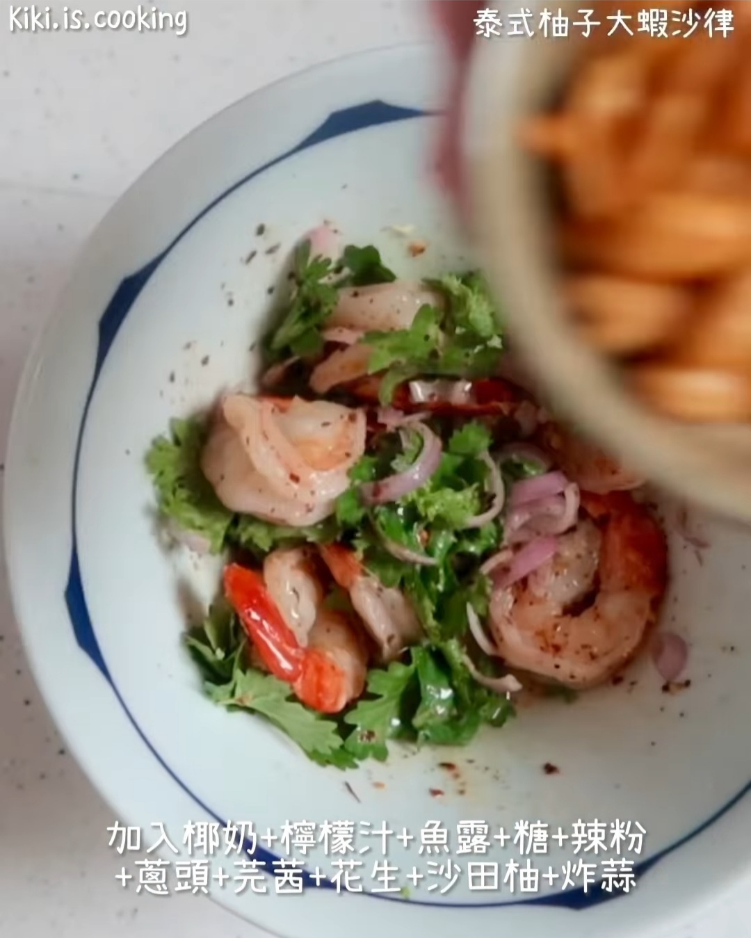 泰式柚子大蝦沙律這道菜,大家一定不會陌生,是泰菜中最深受歡迎的前菜之一。平日出街食,若嫌柚子份量不能滿足,自家製作就可以無限添加了。另加入少少辣粉調味,就更加開胃!