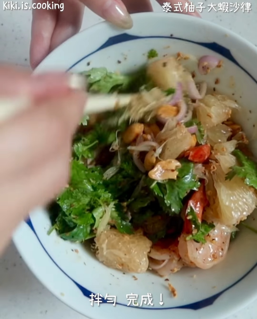 - 先將柚子肉以外材料拌勻,最後加入柚子再將所有材料拌勻,完成。