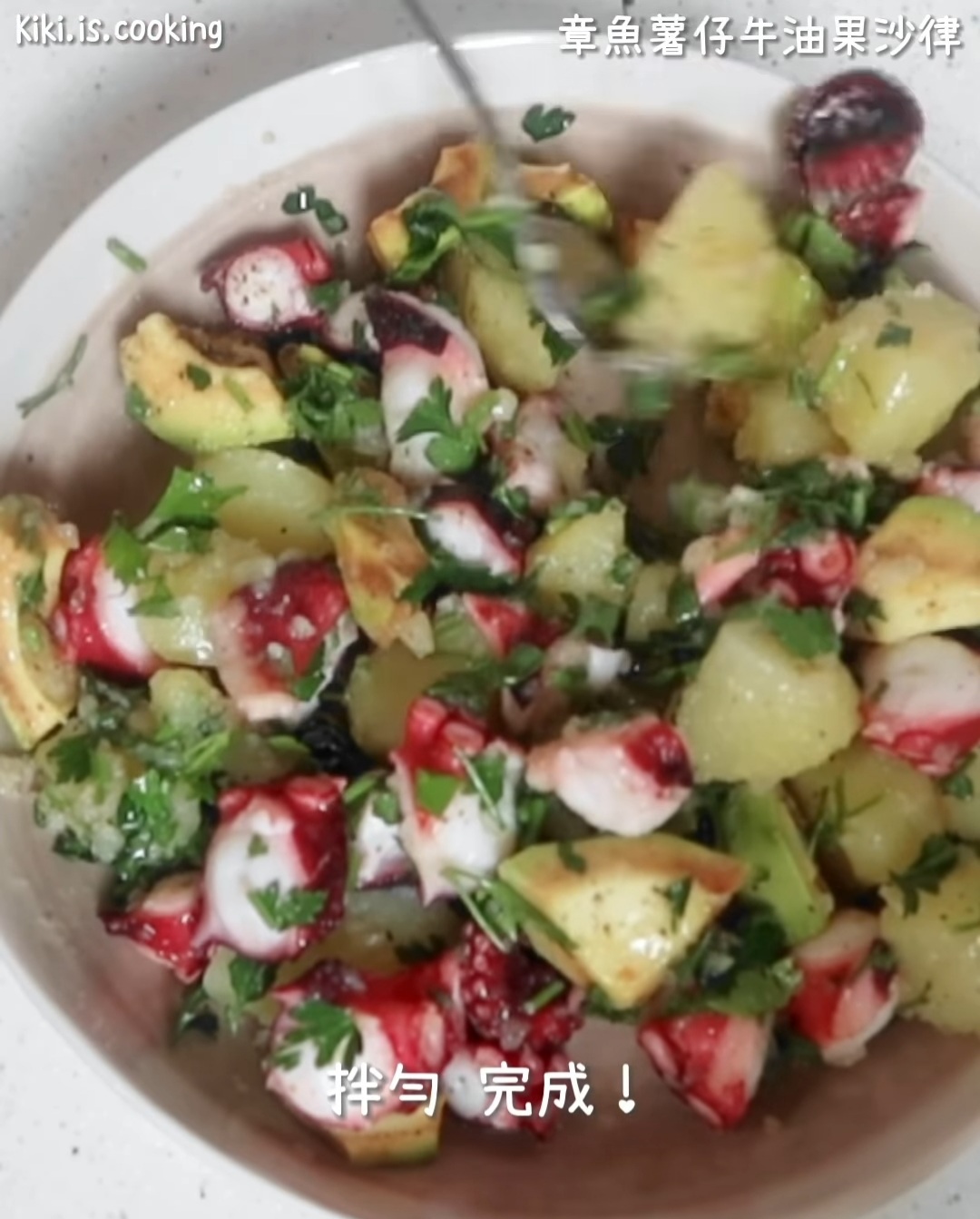 - 薯仔和章魚都稍稍放涼後,將所有材料混合,完成。