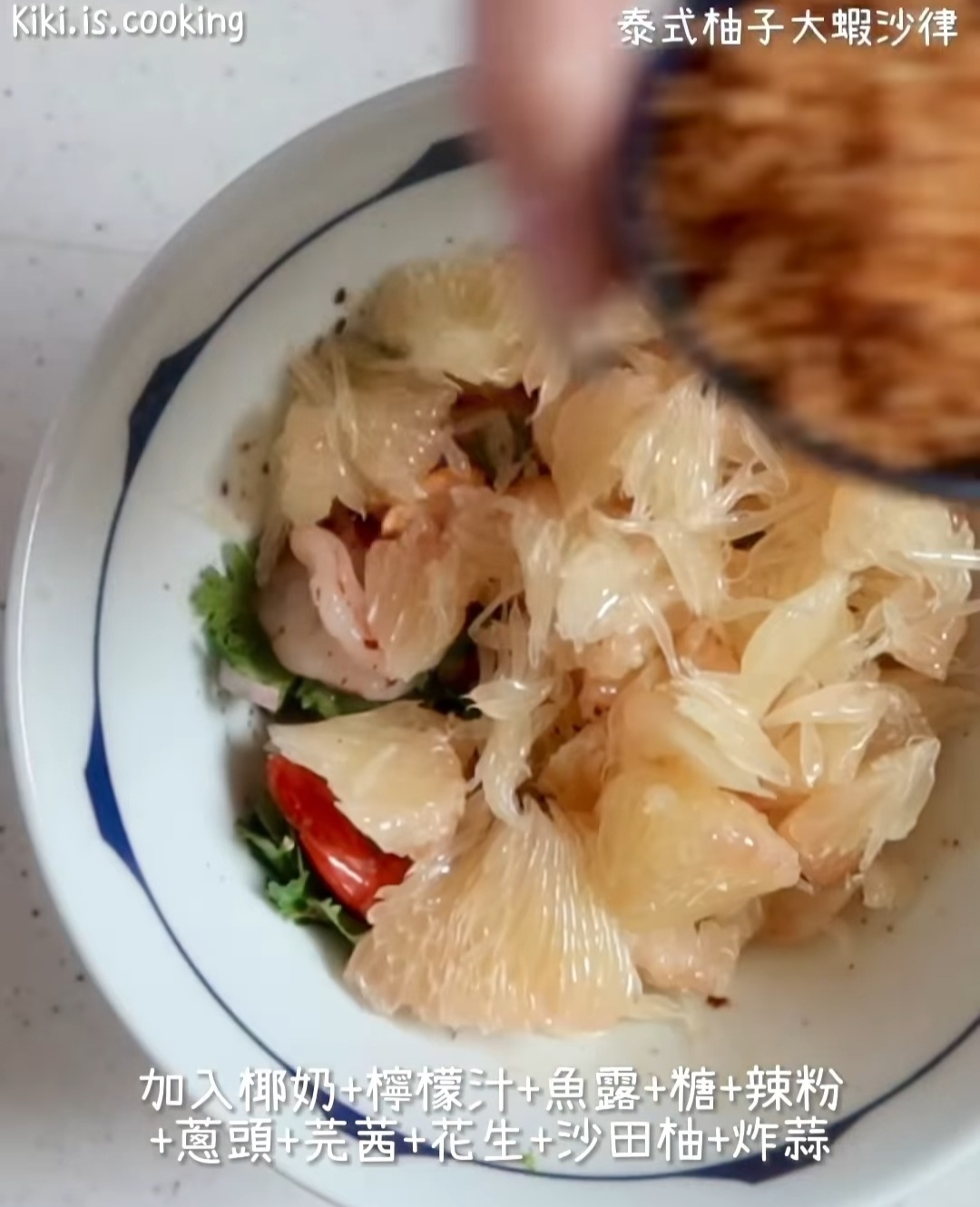 - 先將柚子肉以外材料拌勻,最後加入柚子再將所有材料拌勻,完成。