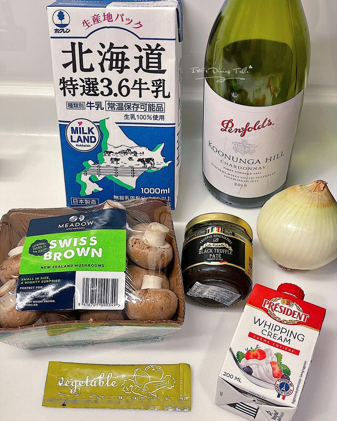 調味料:黑松露醬 1-2茶匙、鹽、黑胡椒碎 適量、白酒 20ml、蔬菜高湯/ 雞湯 500ml、牛奶 50ml