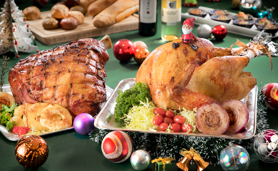 菜式:燒聖誕原隻火雞伴自家製餡腸、蜜糖芥末燒聖誕火腿、燒美國特級肉眼扒聖誕布甸、聖誕樹頭蛋糕、聖誕曲奇、朱古力噴泉冰鎮、波士頓龍蝦、鵝肝醬芝士焗蠔等