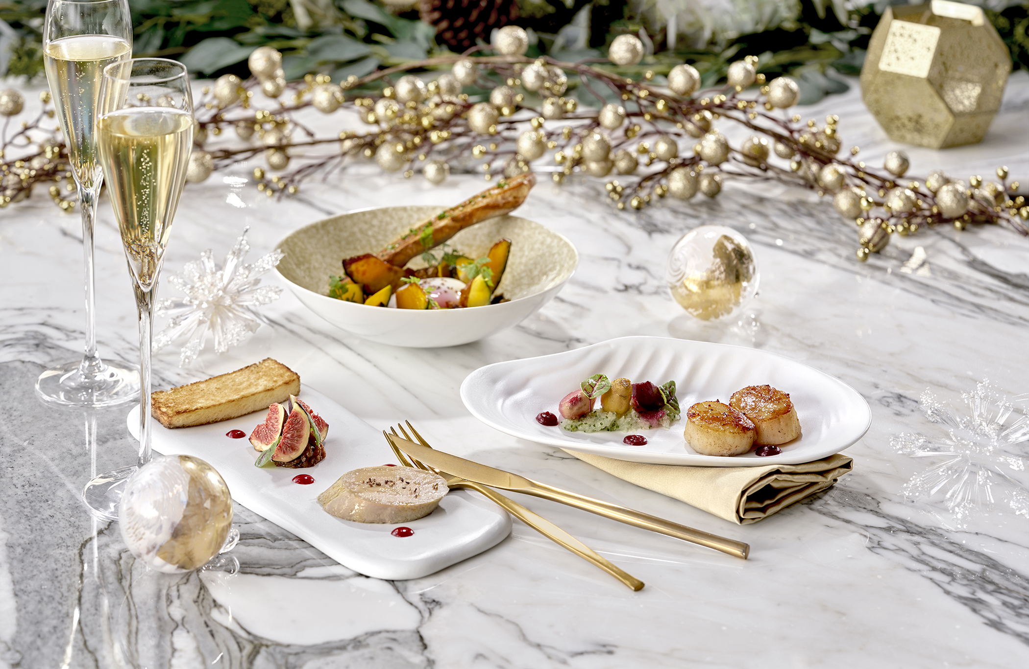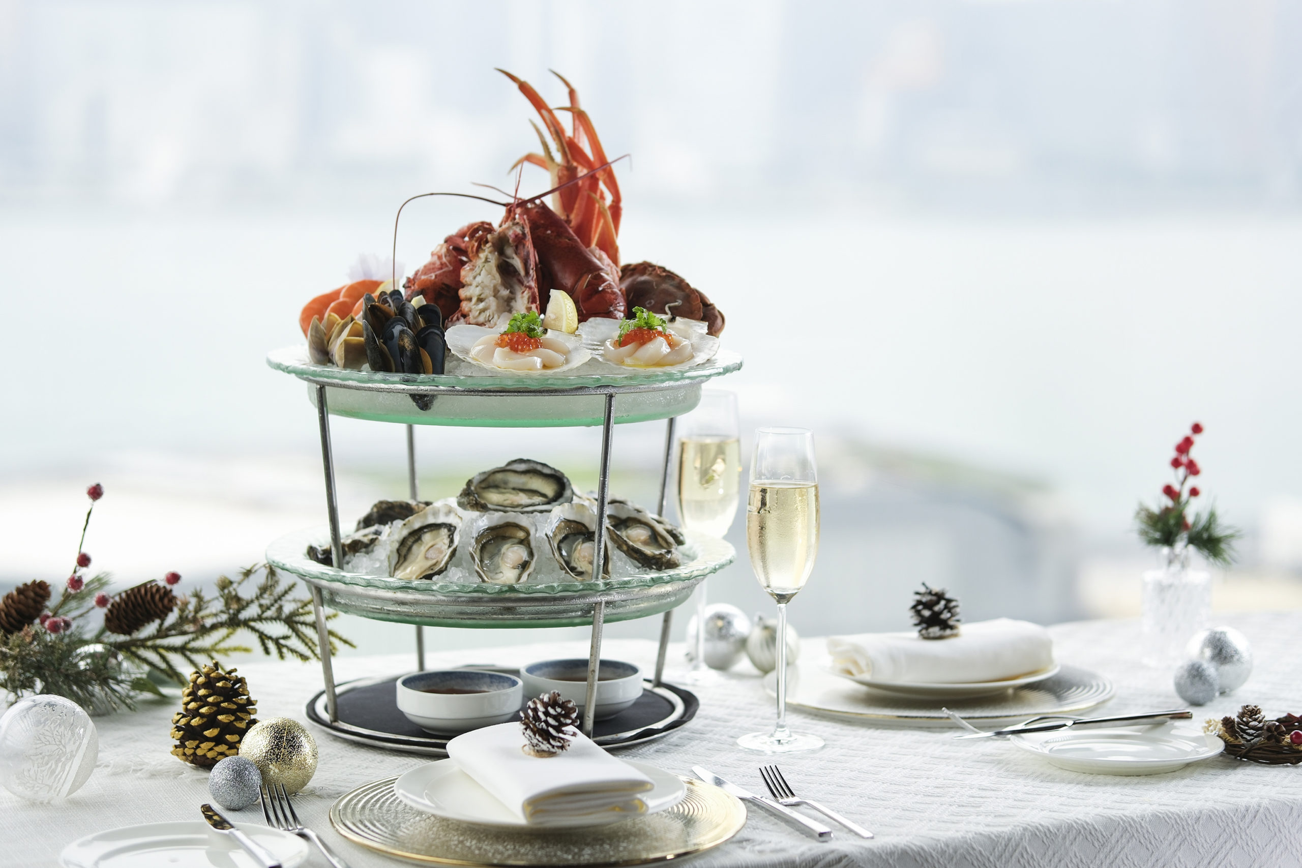 酒店頂層的蠔酒吧有着180度維港聖誕景色,主廚為聖誕及除夕夜設計了兩款五道菜晚宴菜譜。