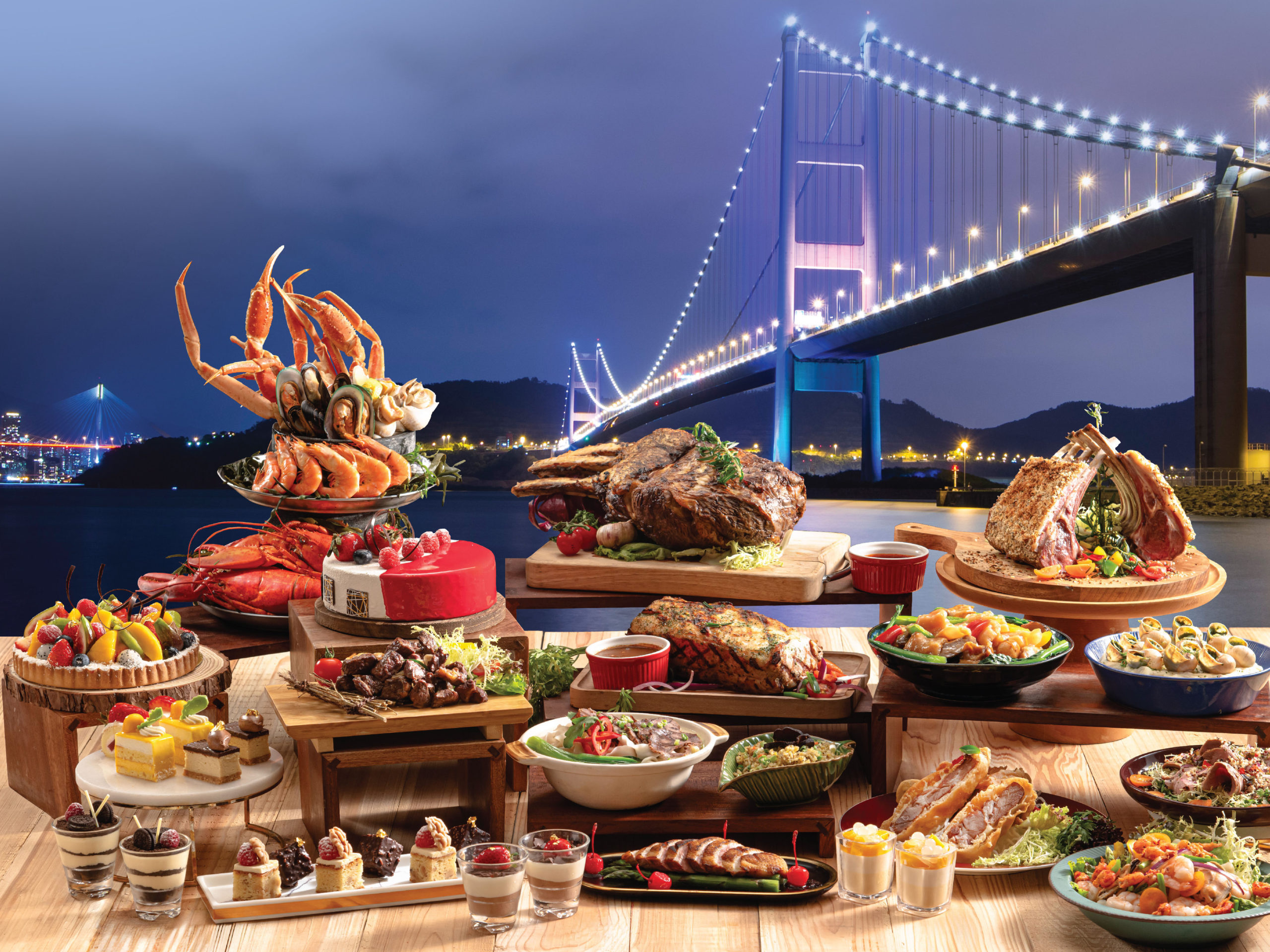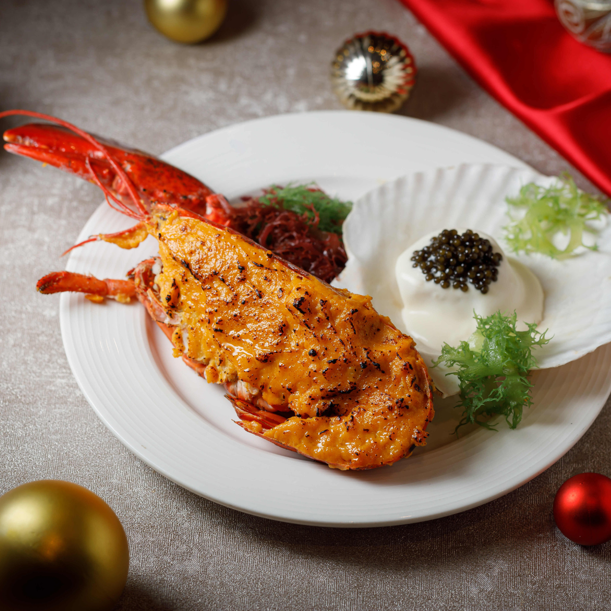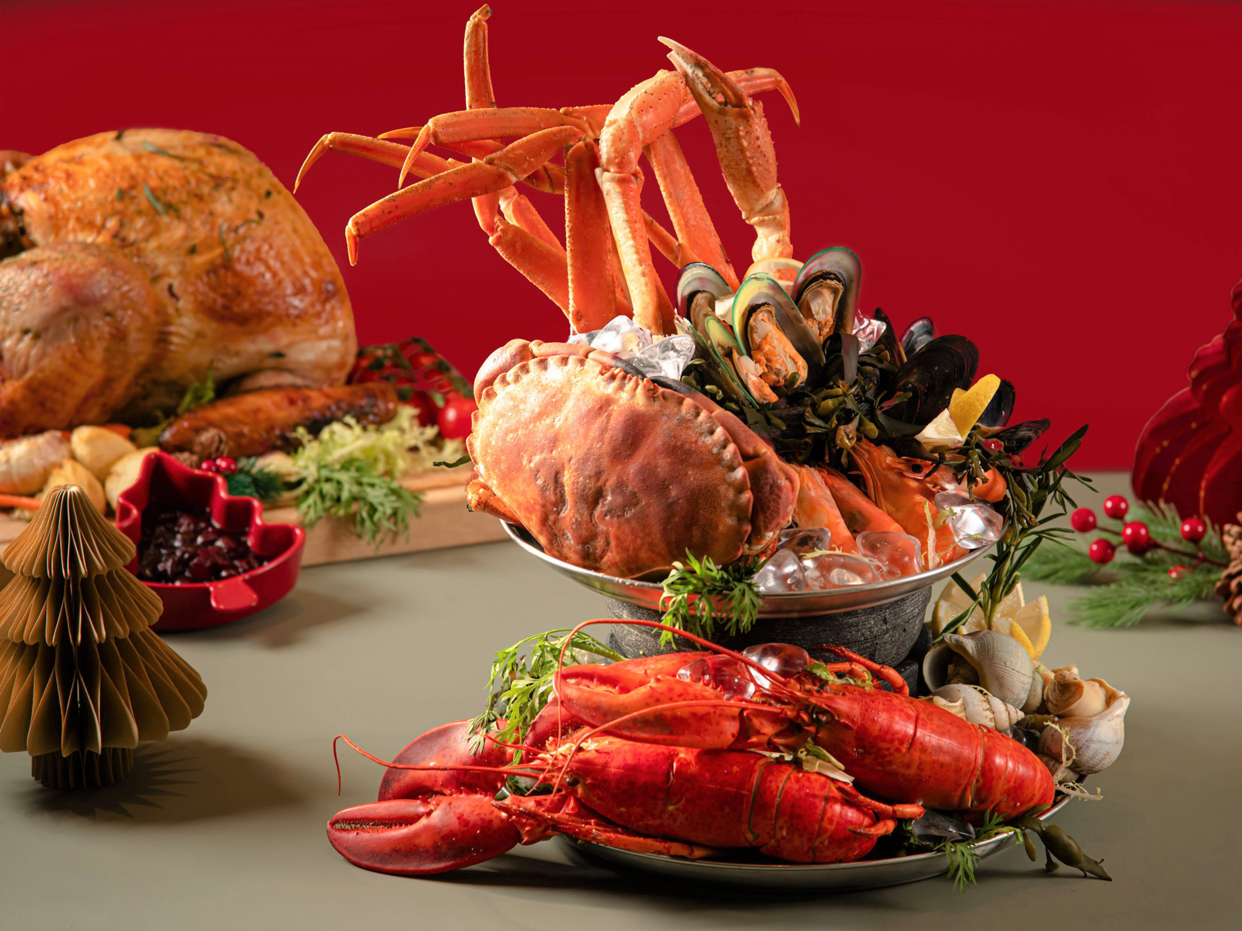 菜式:波士頓龍蝦、多款冰鎮海鮮、燒特級有骨肉眼(12月24、25及31日供應)、聖誕燒火雞配栗子釀餡(12月24、25及26日供應)、花膠鮑魚、老虎蝦配香草蒜蓉牛油汁、日式爐端燒、聖誕布甸