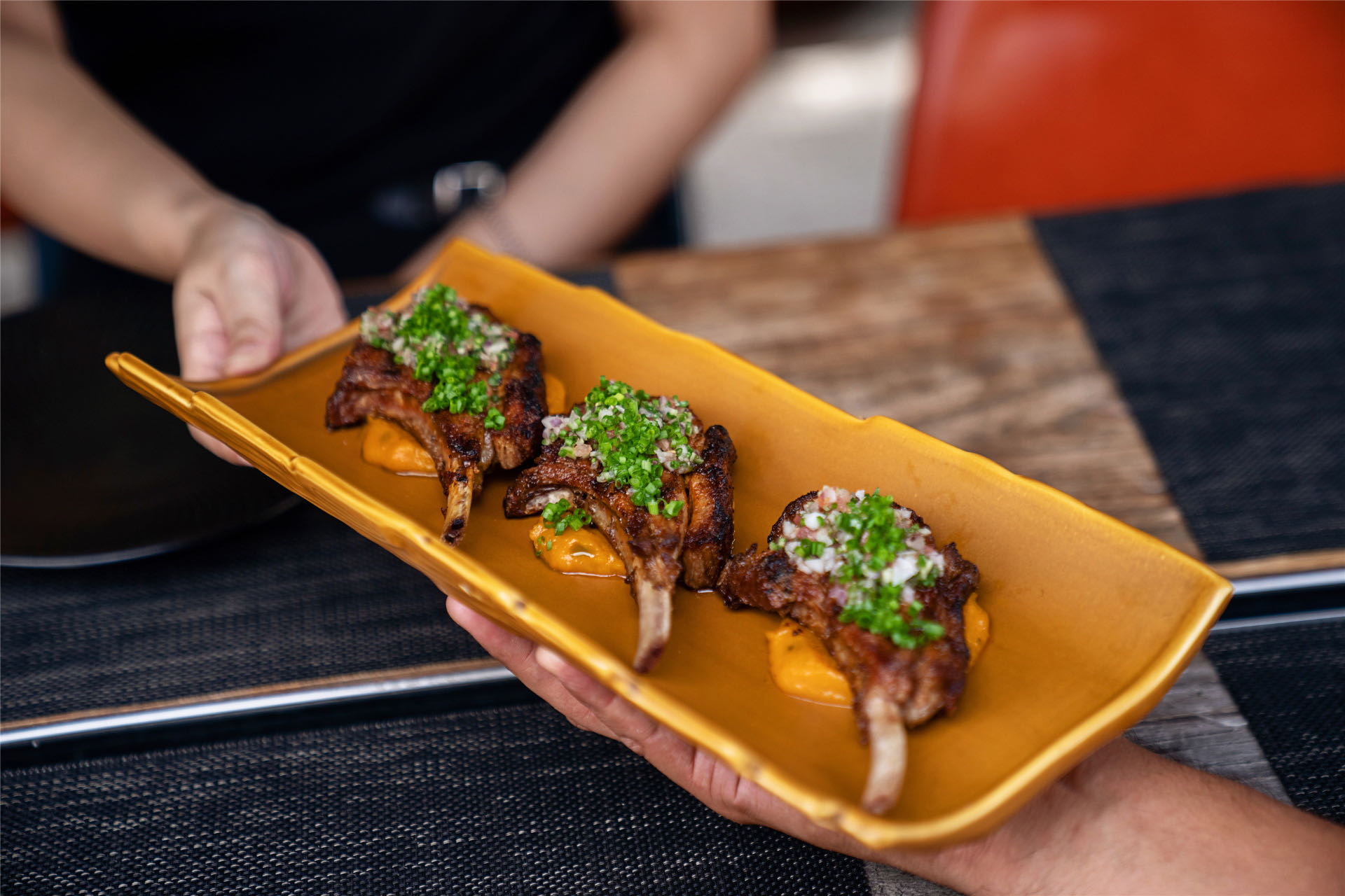 西班牙餐廳及酒吧BAYFARE SOCIAL推出由主廚特別設計的菜式,包括以蟹肉魔鬼蛋、青蘋果及蛋黃醬製作的滋味西班牙風味釀蛋Huevos Rellenos(HK$198);烤羊排佐烤紅椒堅果醬及歐芹 Costillas de Cordero(HK$298);以烤西班牙章魚、西班牙辣椒和紅椒油製成的西班牙式烤章魚Pulpo a La Parrilla(HK$398)等。