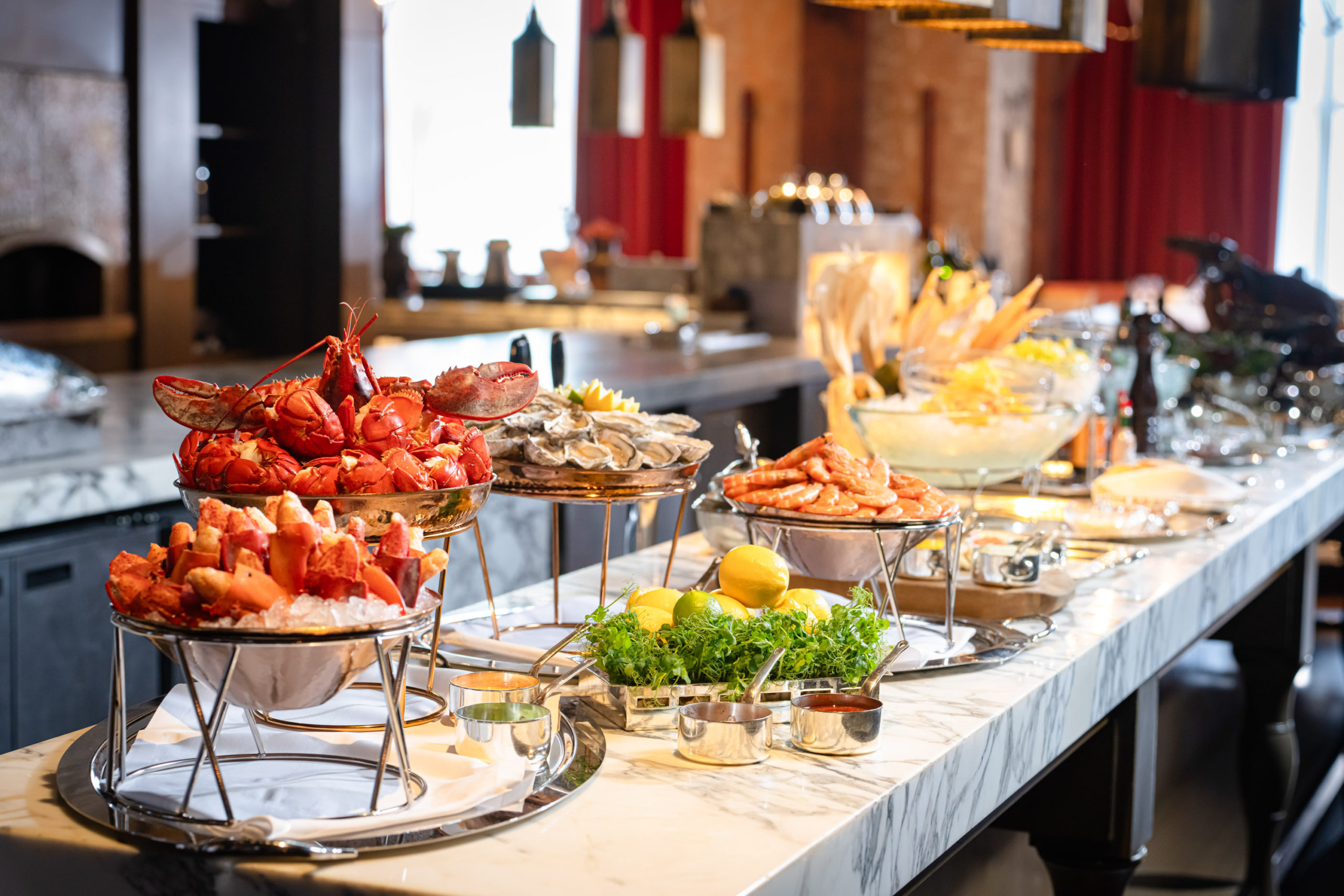 自助晚餐菜式:即烚波士頓活龍蝦、燒波士頓龍蝦及上湯波士頓龍蝦伊麵,還有節日限定燒皇帝蟹腳、香煎鴨肝多士、燒酥皮三文魚和冰鎮皇帝蟹腳