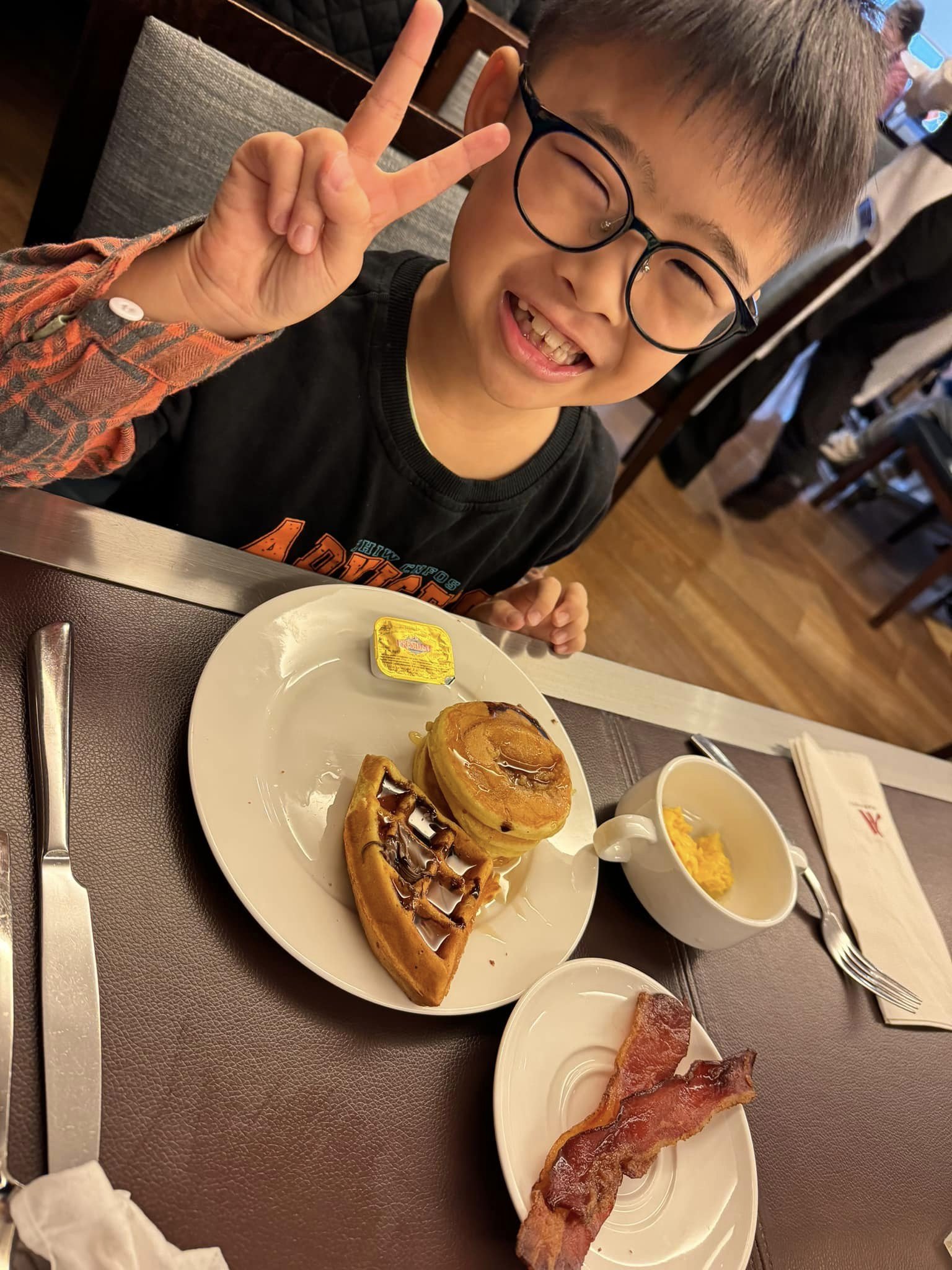 自助早餐款式都幾多選擇,味道都唔錯喎 中西都有,粥粉麵、點心、滑蛋奄列、麵包、沙律乳酪、超多款水果、果汁飲品等⋯好多都啱小朋友食!最愛pancake、格仔餅 非常滿足~有BB凳、兒童餐具提供~
