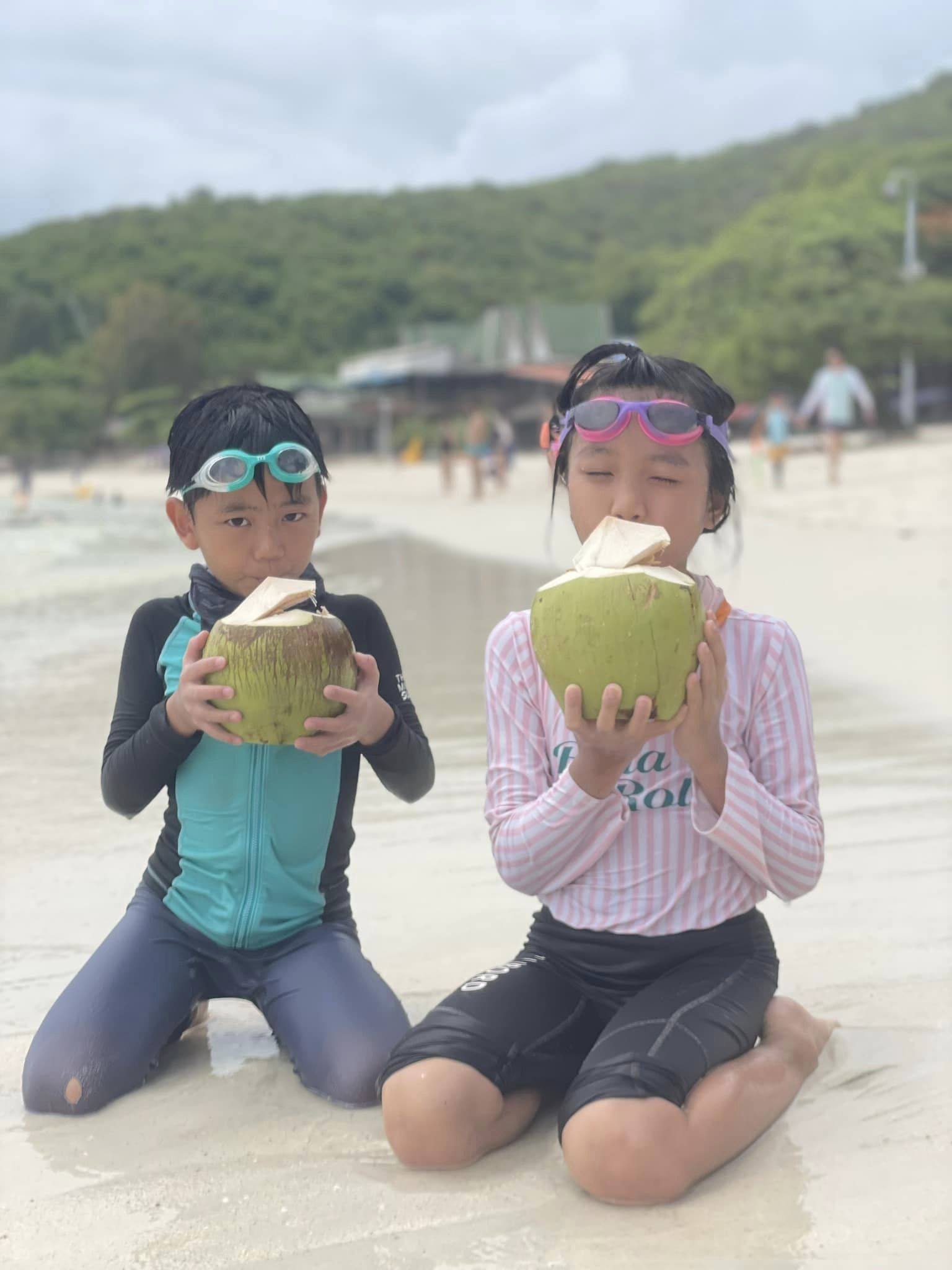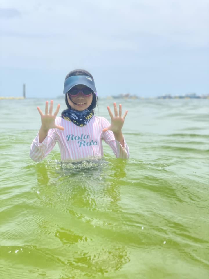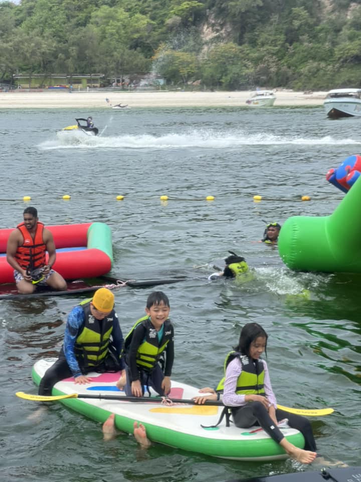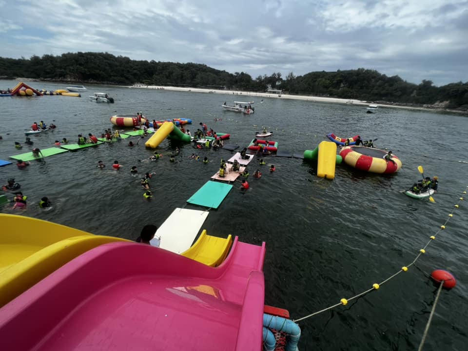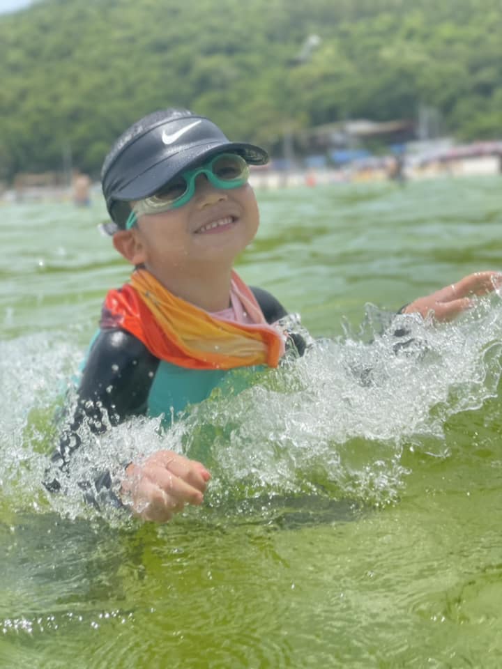 「去到珊瑚島水清沙幼,小朋友興奮得立刻玩水!見住人哋玩水上拖傘、香蕉船、水上電單車、海底漫步,喺旁邊睇都覺得興趣刺激!」