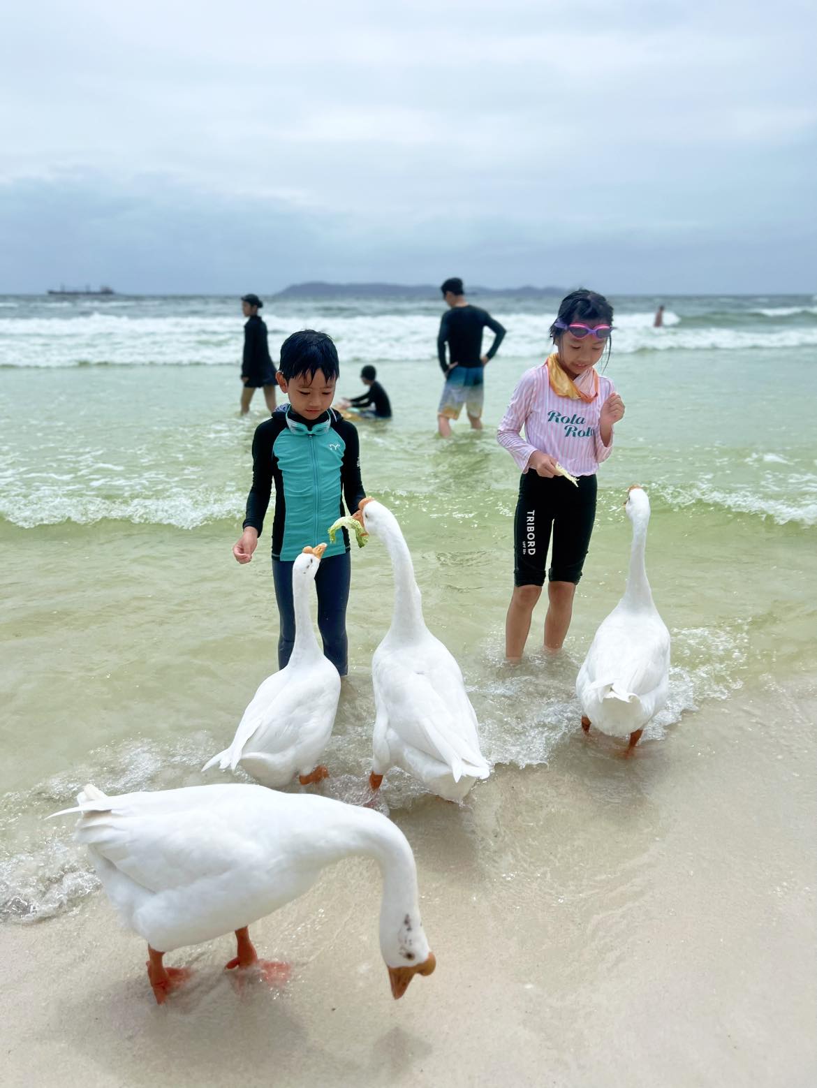 到了第二天,他們一家人終於親身體驗到水上活動的樂趣:「因為應強風,水上電單車同香蕉船都令人興奮到不得了,而最驚喜的是鴨仔出巡,小朋友都可以近距離親手餵鴨,超可愛!」