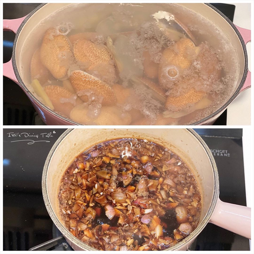 - 花甲處理及做法同潮式魚露浸花甲1至3步驟相同。