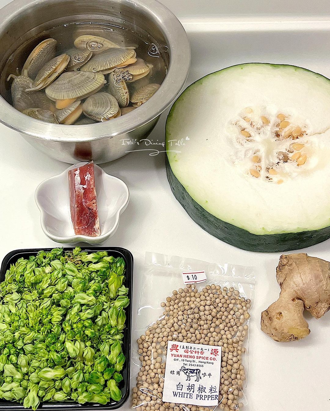 近日天氣炎熱,最岩吃冬瓜消消暑!這個食譜除了冬瓜、花甲之外,另加入了虎蝦乾和金華火腿提鮮,最後加入夜香花,令湯的味道更加清香,建議加粉絲一起食用。