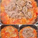 4. 同一個鍋下蕃茄粒拌炒,可輕壓茄粒䆁出水份;加入調味料煮沸,小火煮至出汁;放入粉絲炒勻,合蓋小火煮2分鐘;鋪上牛肉片,合蓋小火煮1-2分鐘,灑上蔥花即成。
