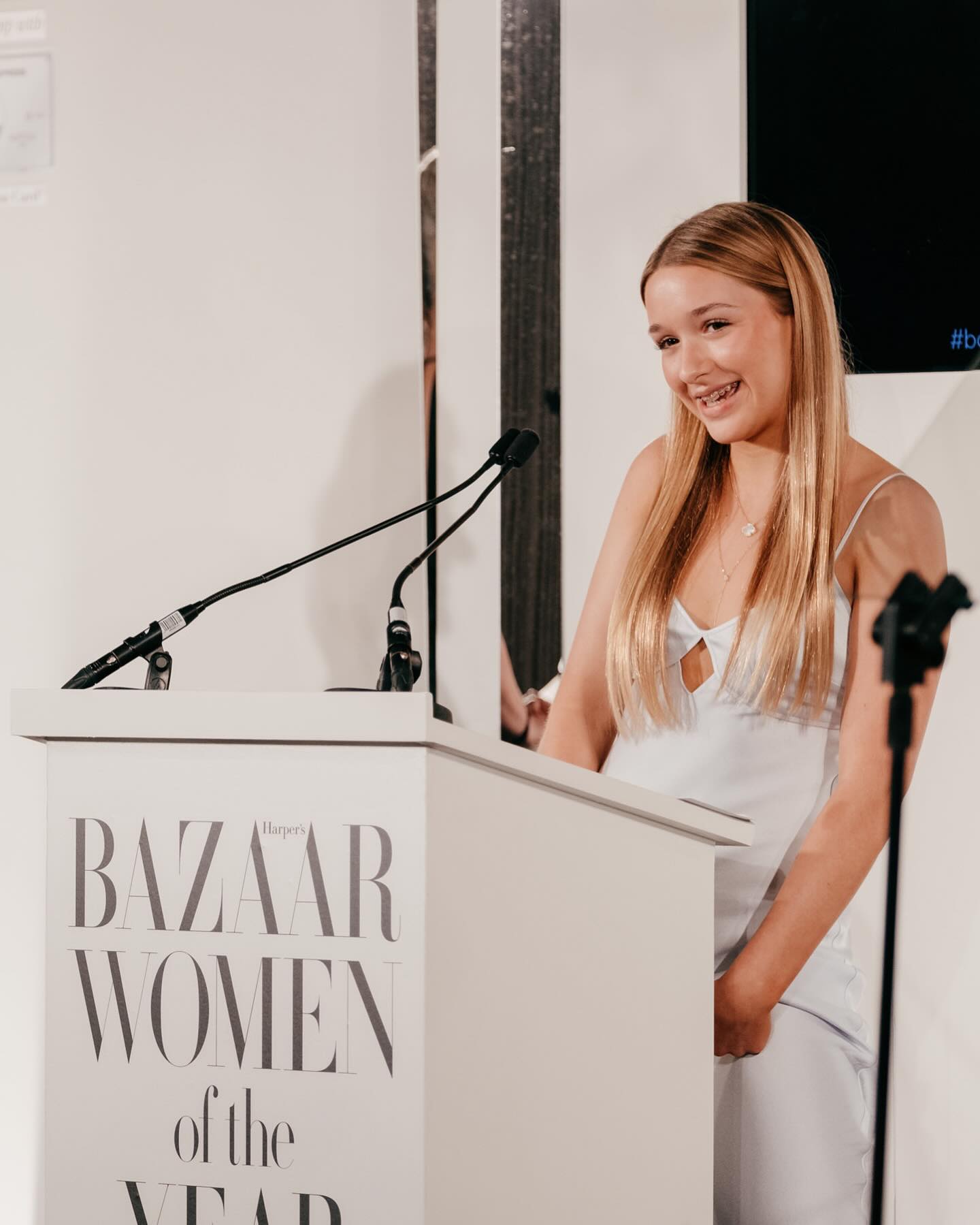 日前,Harper和Victoria獲邀出席《Harper’s Bazaar》UK頒獎典禮,Harper更是擔任「年度企業家獎 」的頒獎嘉賓,把獎項頒給媽媽。Harper雖然在台上表示自己很緊張,但其實也表現得相當淡定得體。她在致詞時讚揚母親,指:「她用努力創立了一個品牌,示範了如何實現了夢想與價值,並成為了我的榜樣。」,並強調「儘管她有一百萬件事要做,但她從不缺席我的校園生活。」