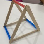 1. 用白膠漿把3條雪條棒黏貼成三角形狀,重複此步驟,製作出2個三角形