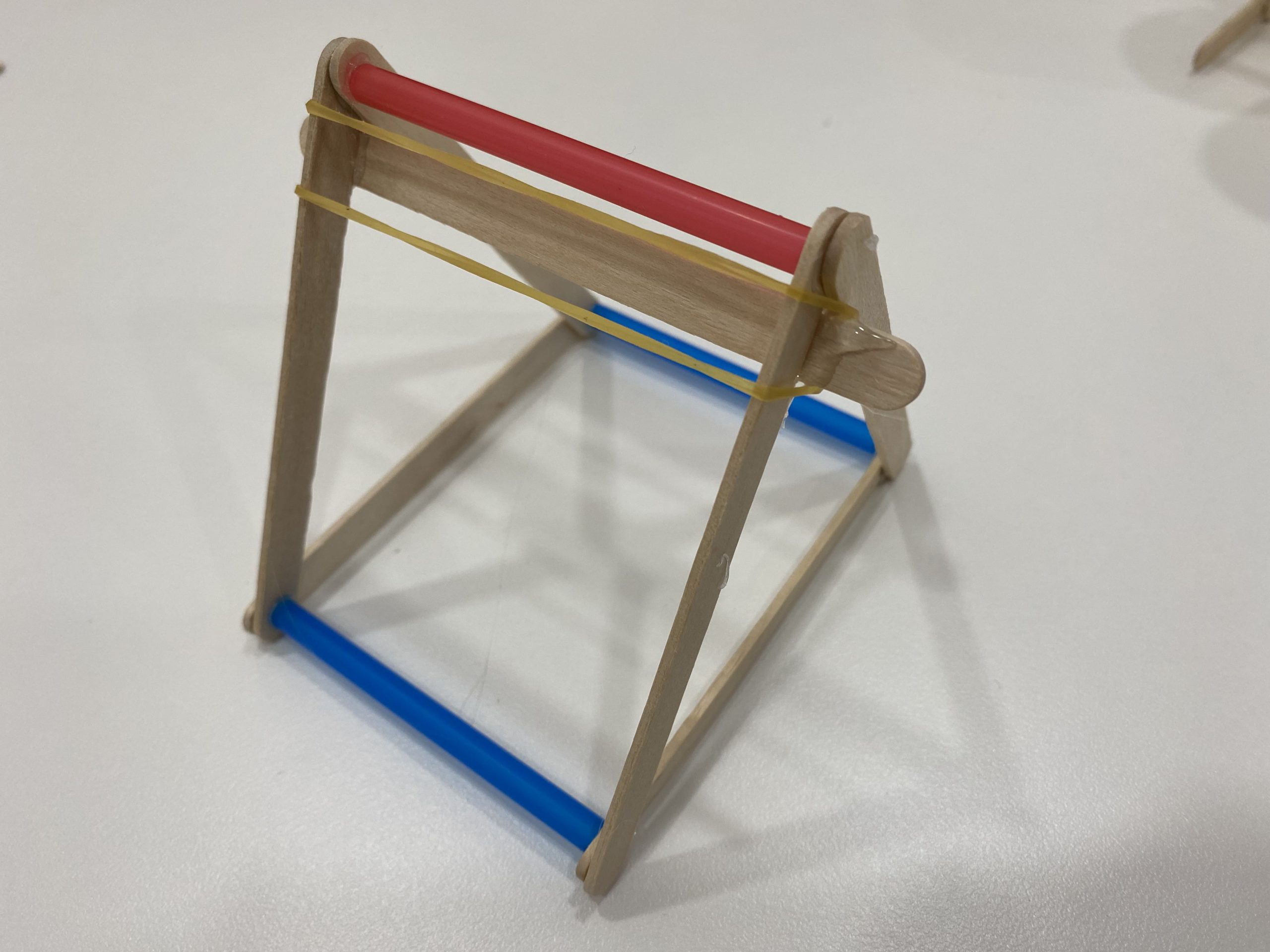 3. 於其中一邊的支架頂端貼上2條雪條棒