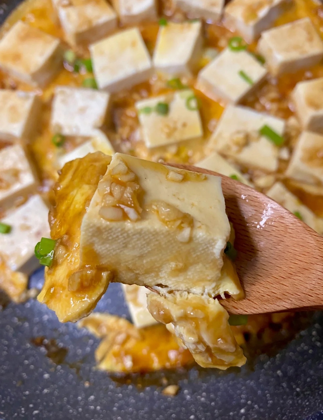 - 加入味醂、清酒和醬油,讓豆腐吸收湯汁,即成。