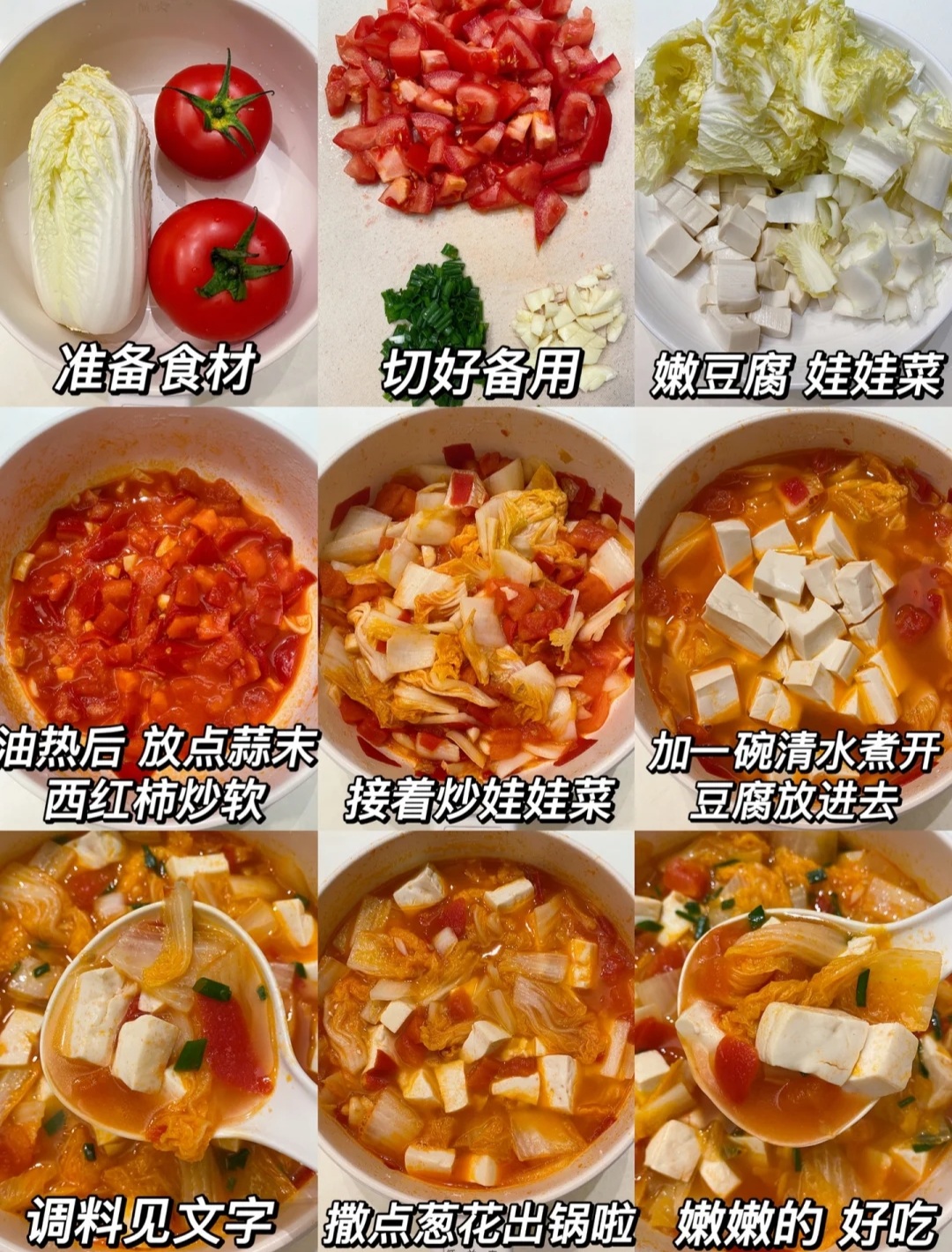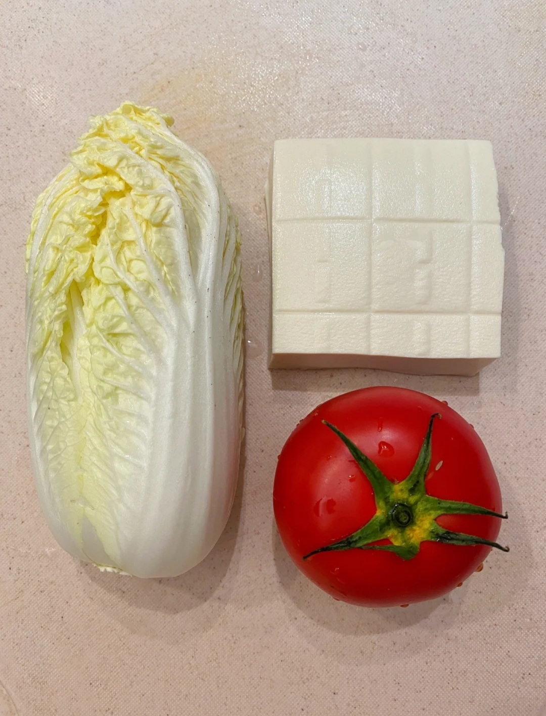 材料 :蕃茄1個、嫩豆腐1磚、娃娃菜一棵