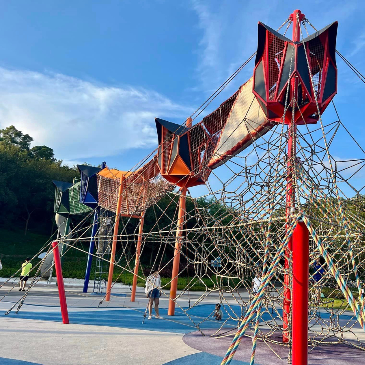 金沙灣鵬飛公園有許多游玩項目,其環境和設施色彩繽紛而十分吸引小朋友玩。公園設有吊橋、雲朵彈床巨型滑梯、繩網攀爬、小火車和室外自動車等。