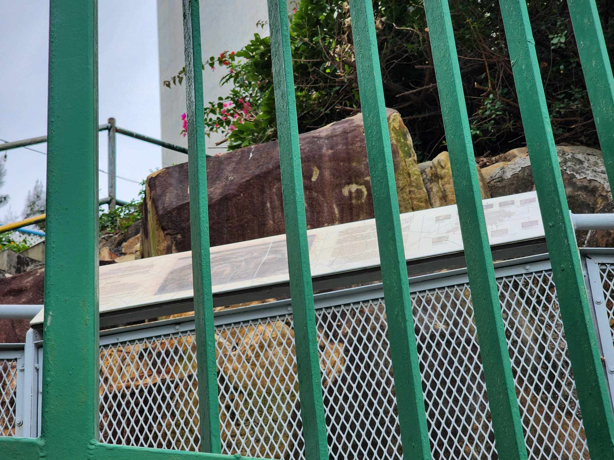 長洲石刻的所在地算是容易到達,不用行山,只要走入東灣就能找到了。但讓工程師媽媽感到可惜的是,前往古石刻前方的道路被上鎖了,所以未能近距離觀賞古蹟。加上,石刻上有厚厚黑黑的淤泥,未能讓人看清原貌。