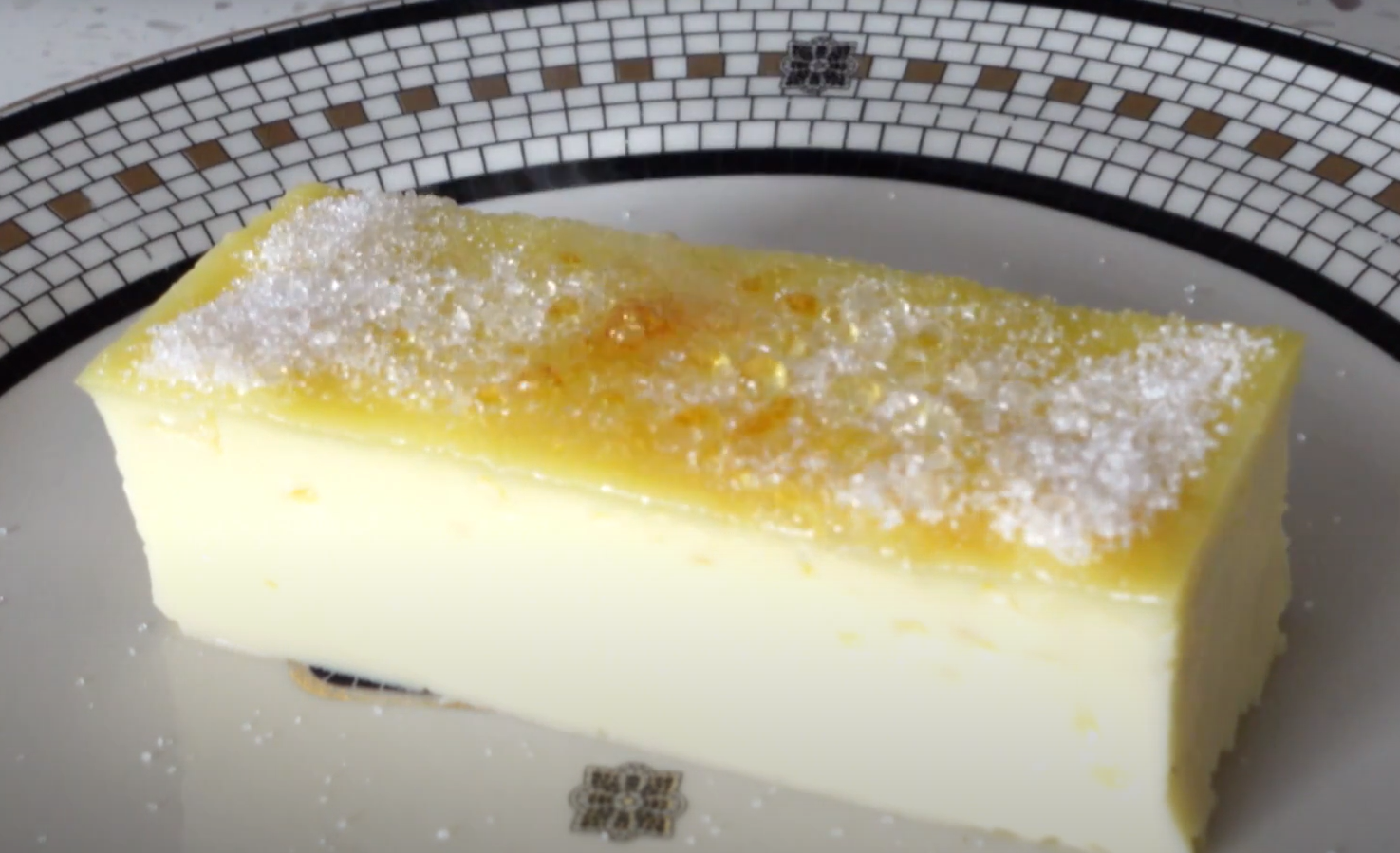 6. 拿出來待涼後再放入雪櫃至少6個小時。在上面灑上白砂糖,再用火槍燒成焦糖即成!