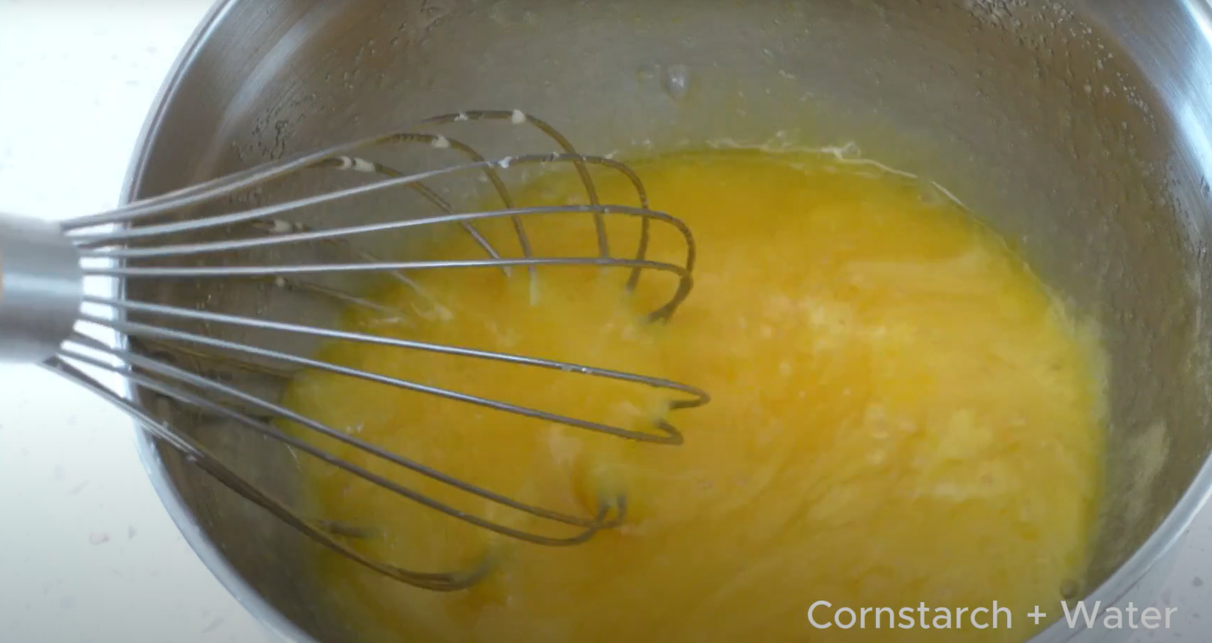 3. 加入(玉米澱粉+少許開水)、 雲尼拿香油,拌勻