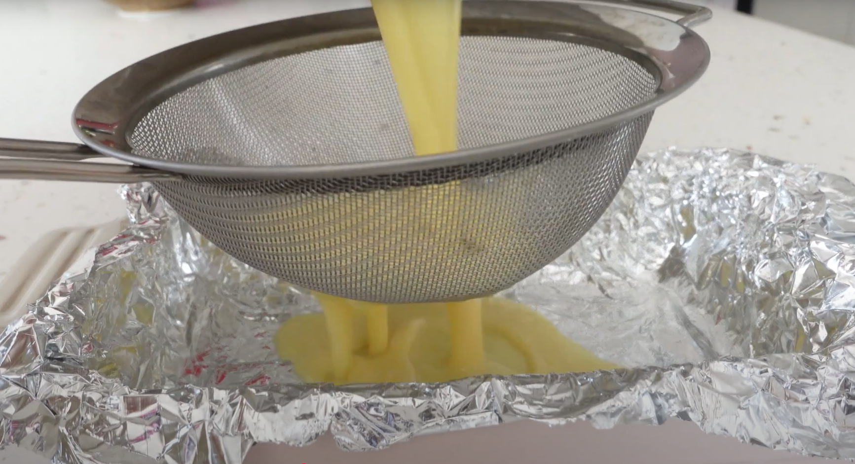11. 使用篩網,將布丁液過篩2-3次,去除泡泡