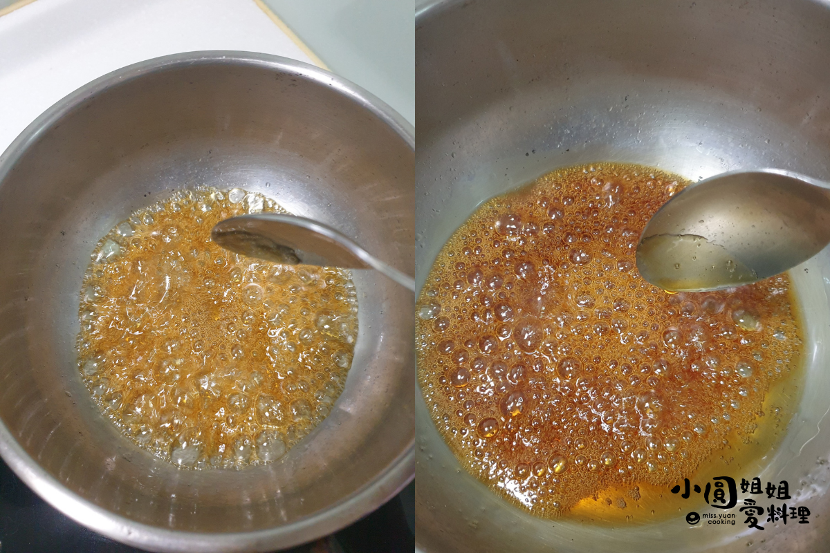 8. 加熱到砂糖融化後,即可熄火