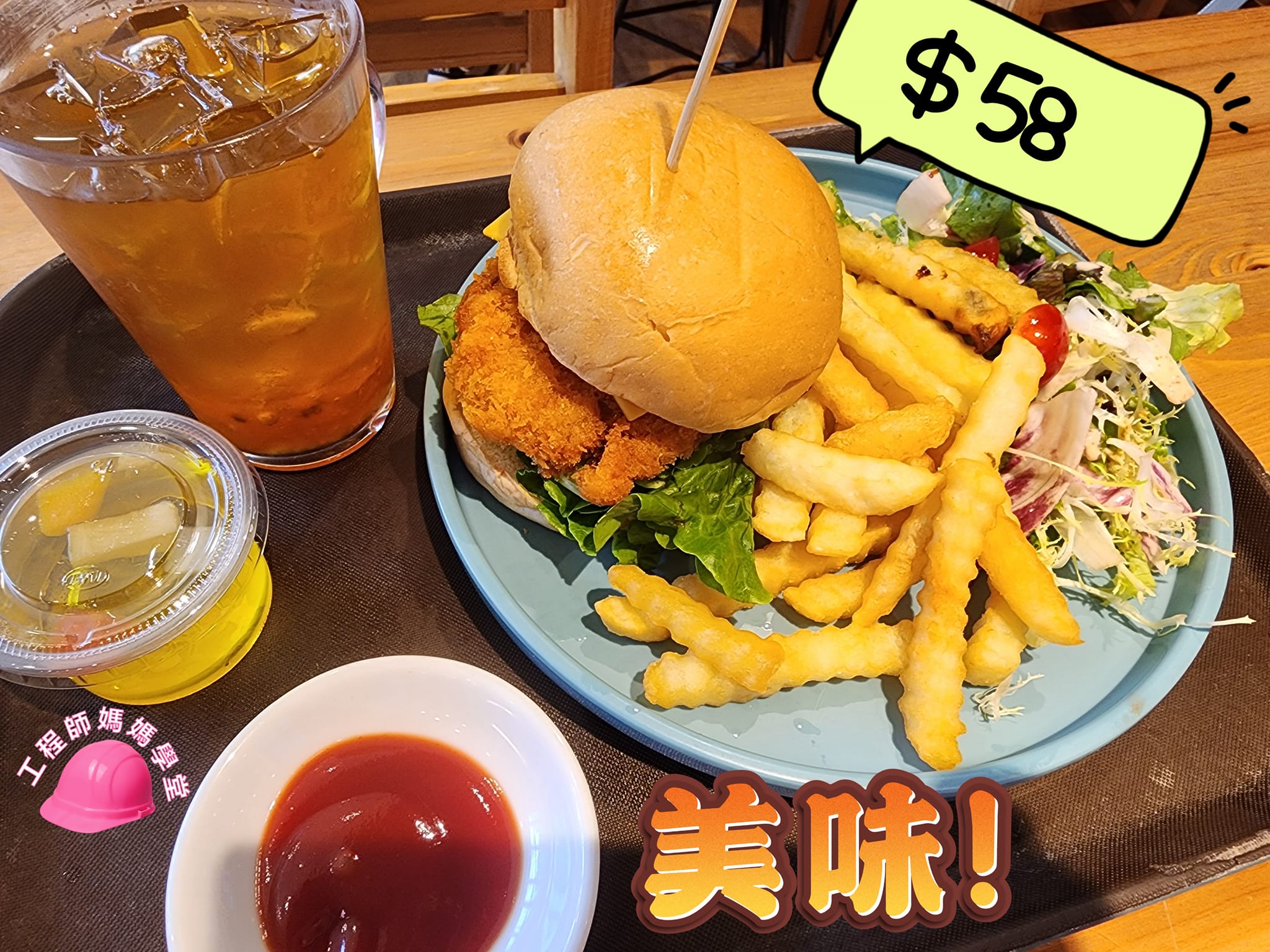 大大份薯條漢堡餐也只是$58(無加一)。小朋友兒童餐仲有大大隻飛機,滿滿的肉醬意粉,甜絲絲的啫哩杯,雞翼、薯條、香腸,大份到差不多係一大一小的份量,而兒童餐的價錢也是$58 (無加一)。除了西餐外,還提供中式餐飲,如燒味飯,沙律套餐也非常豐富,下次去一定要試。