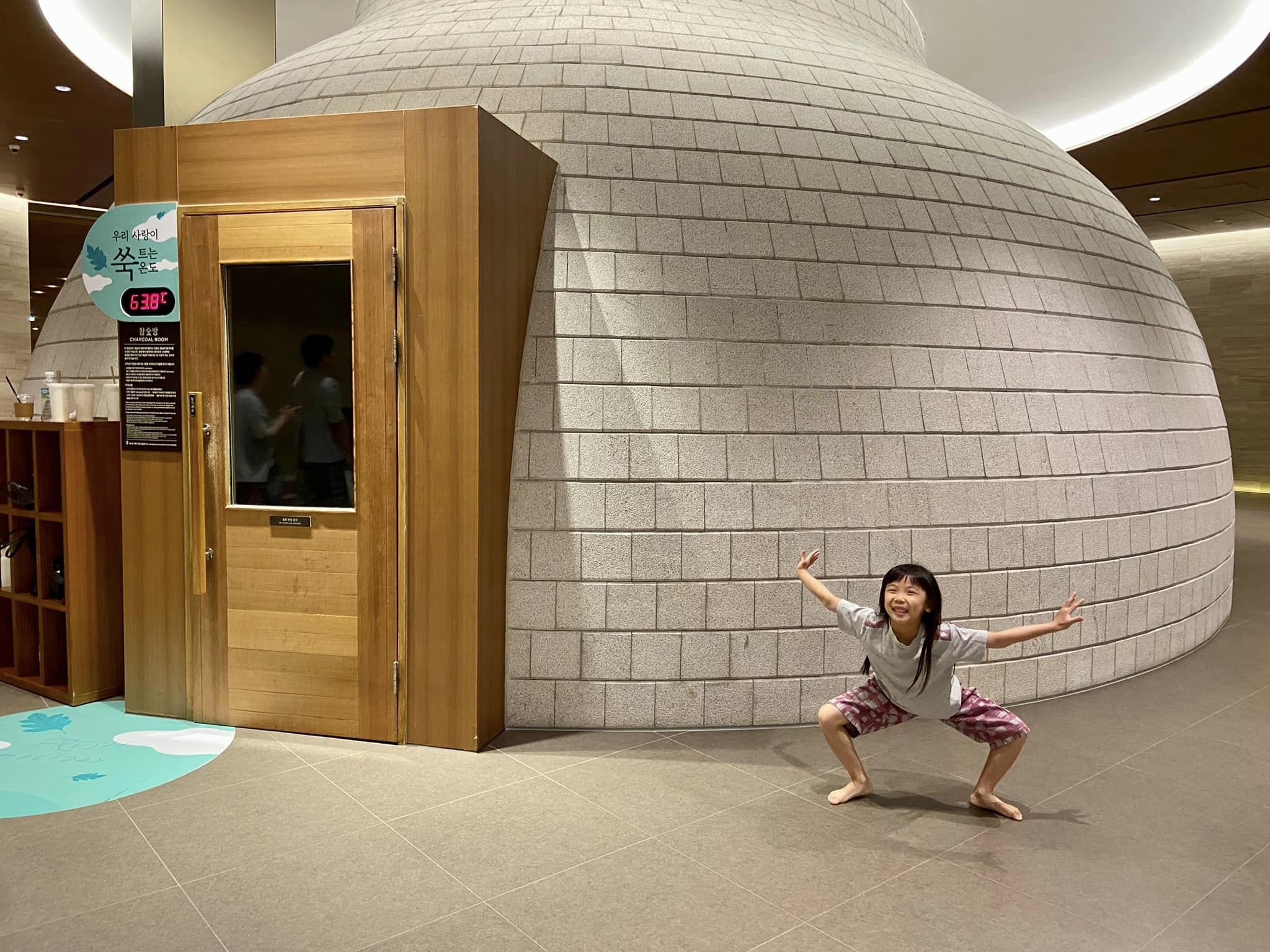 AQUAFIELD高陽汗蒸幕位於首爾近郊,環境漂亮、寬敞又乾淨,並且可以寄存大行李,所以配合哪一日的行程都方便。湯圓Mame一家首先嘆完温泉再去打卡汗蒸幕,場內設有多個不同主題的蒸氣房,包括雲朵汗蒸幕、礦石室、鹽室、火爐汗蒸幕、扁柏木汗蒸幕、木炭室、多媒體藝術汗蒸幕,大家可以在投映下仿佛在星空、海洋下盡情休息。湯圓Mame認為,汗蒸幕温度不會太熱,小孩也玩得到!