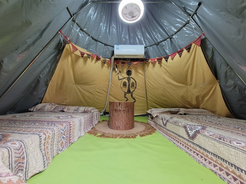 第二款要推介的是蒙古包,大家可以體驗遊牧民族的生活。蒙古包設圓頂天窗作採光之用,設有茶桌雅座、空調、冷熱水淋浴、獨立衛生間、USB充電口、陽台野餐桌、燒烤爐。