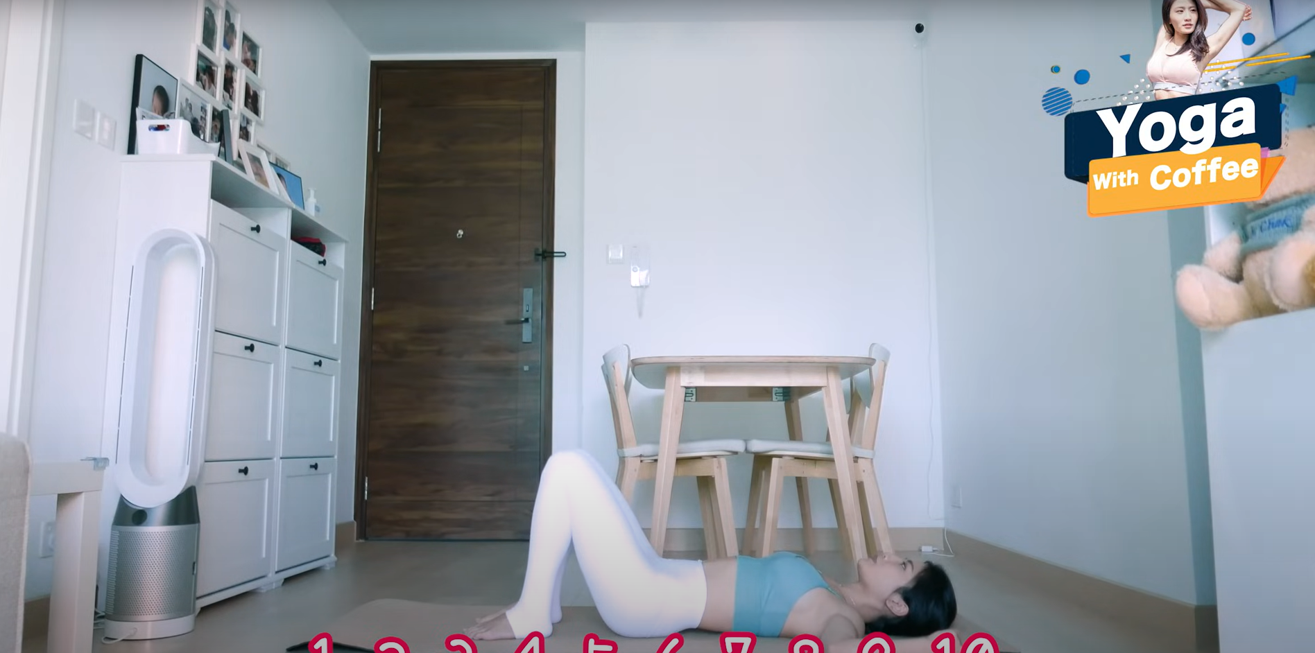 - 躺在瑜伽墊上,屈由雙腿、腳底放在地下,撐起臀部,令雙腳成11字,收緊再下來,做10下。