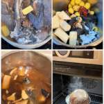 4. 壓力煲: 大鍋加入所有材料,注入清水,中火煮沸後加壓煮1小時;用湯勺分開雞肉,加壓煮30分鐘。