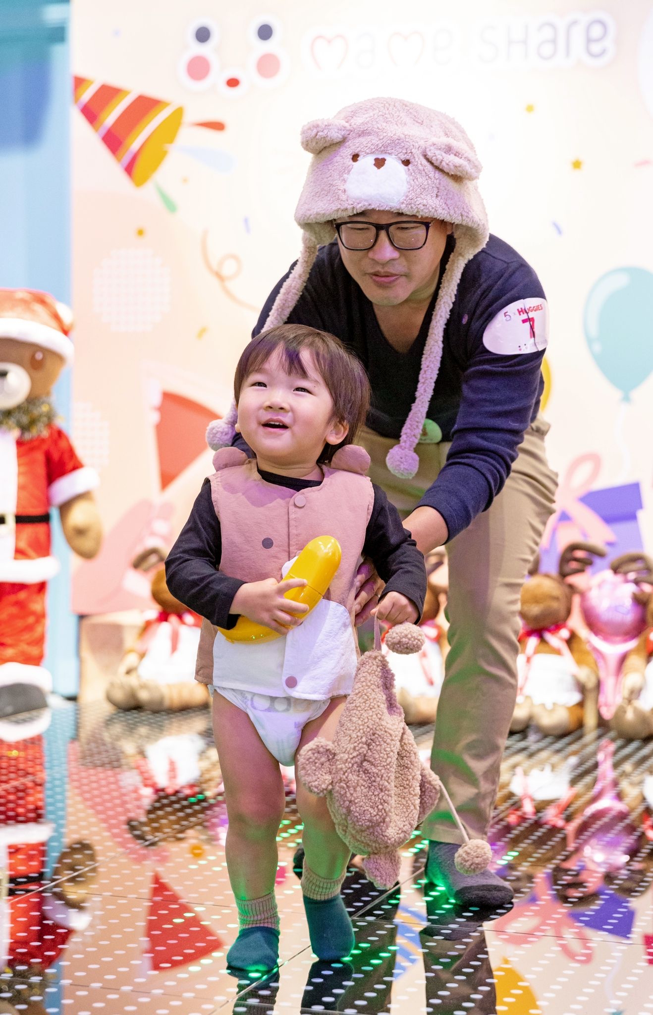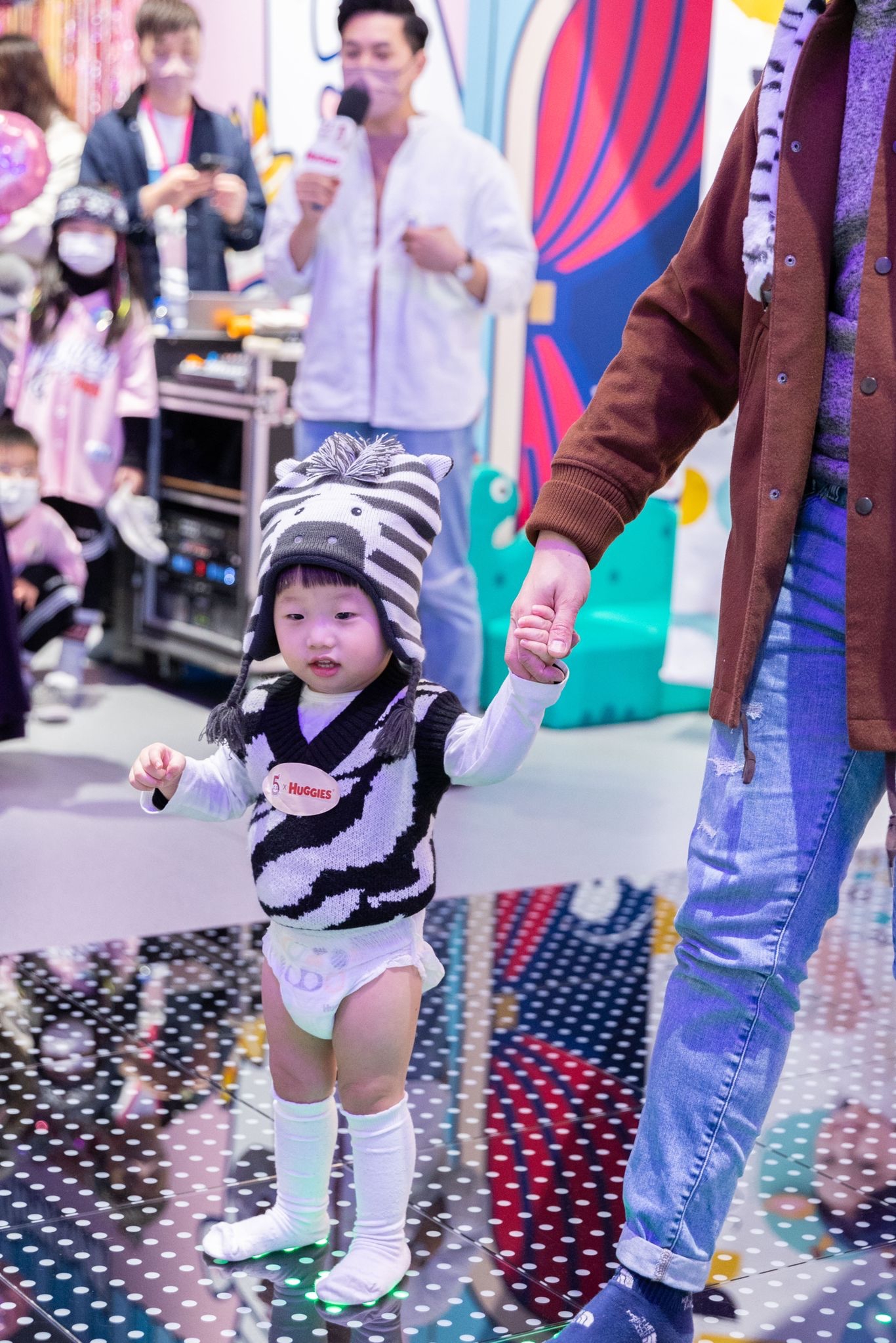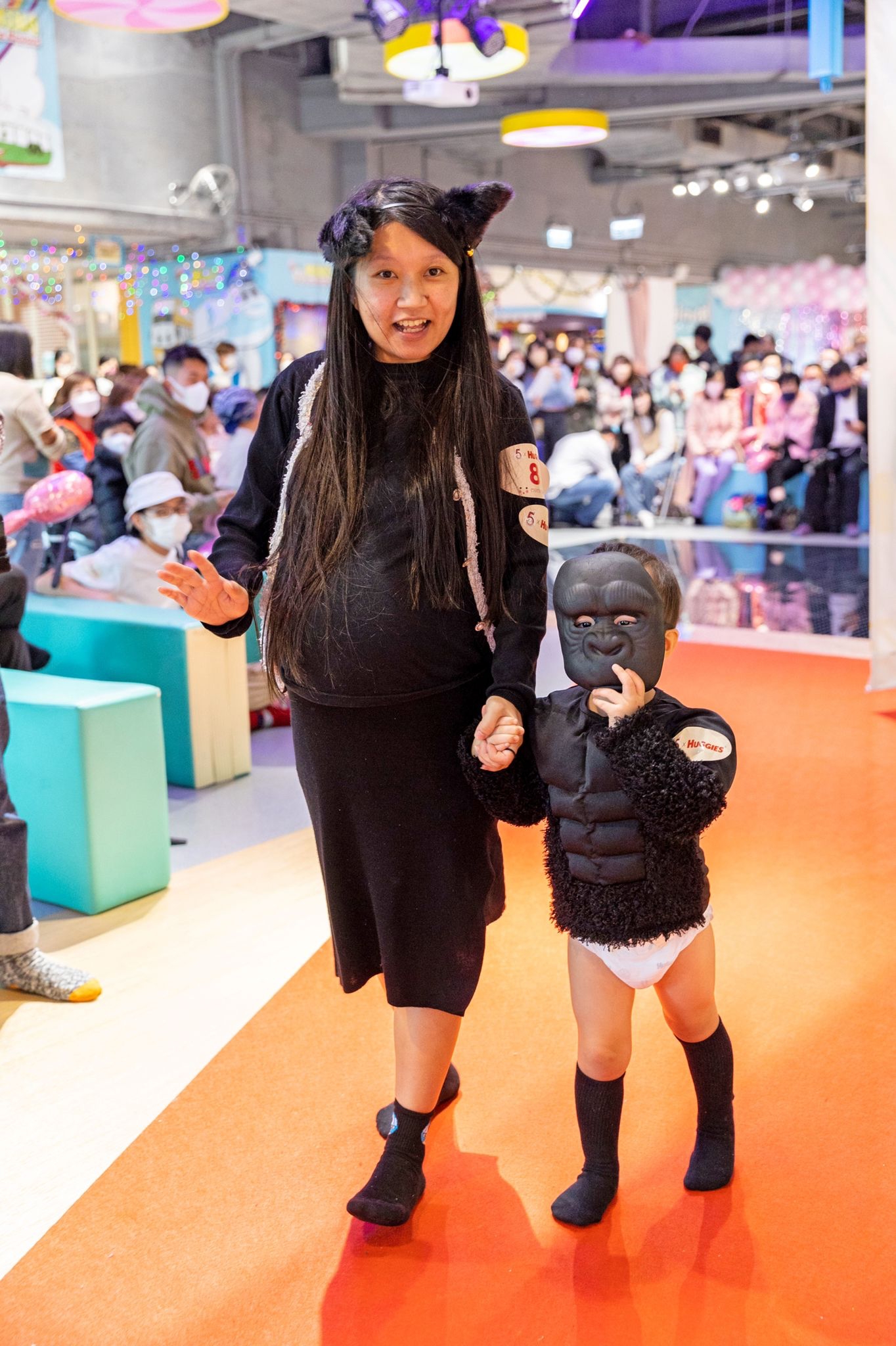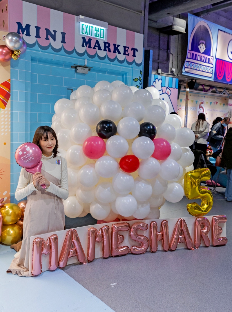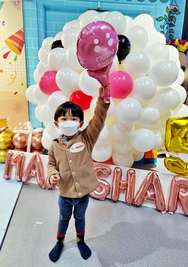 活動現場更有2大打卡位,第一個當然型格的伸展台,小朋友及家長可以一嘗做Model的滋味;而第二個是MameShare的巨型logo及著HUGGIES 片片的巨型BB氣球裝置,站在氣球旁邊打照,非常打卡able。