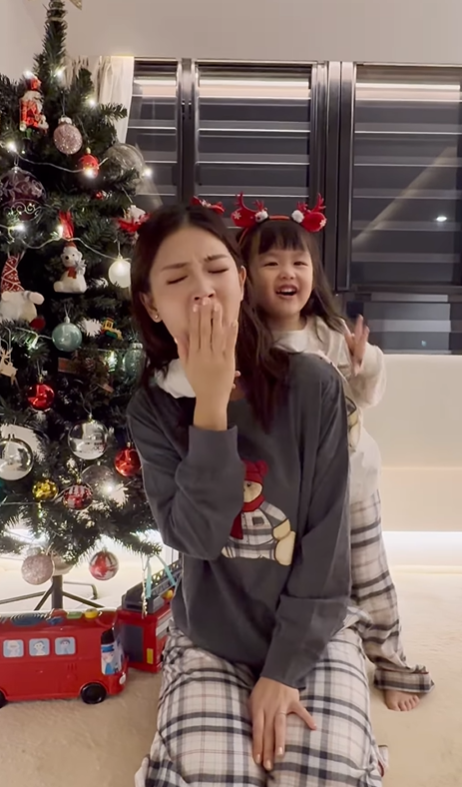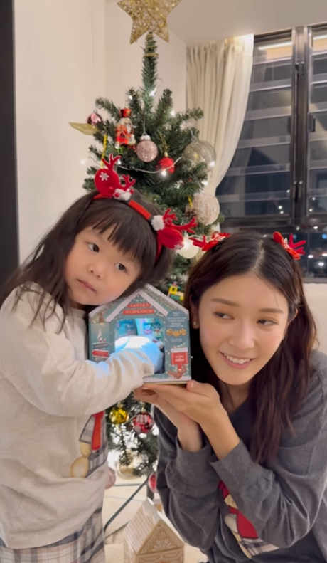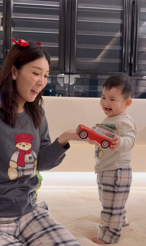 2024聖誕節 | 5. 余香凝著熊仔親子裝 戴紅色鹿角頭箍