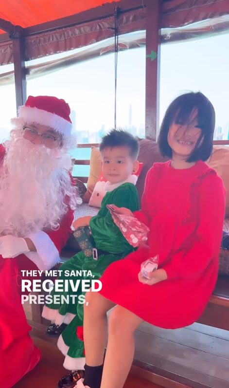 楊洛婷(Rabeea)早前帶兩位小朋友去見聖誕老人,她和丈夫Dear Jane主唱Tim雖然只是穿著得相對簡單,但就幫大女Tanya、細仔Tristan以聖誕節經典系紅色、綠色打扮。Tanya穿了一條純色的紅裙子;Tristan則穿了一身綠色聖誕老人的裝束,十分可愛!