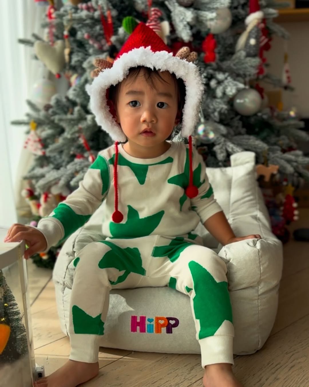 2024聖誕節 | 6. 陳柏宇細囡綠色星星套裝 戴紅色聖誕帽