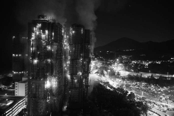 昨日,大埔宏福苑發生特大火警,一場突如其來的災難奪去44條寶貴生命,包括一名英勇殉職的消防員,並造成58人受傷,其中15人危殆、23人嚴重。火勢由一座大廈外牆棚架率先燃起,火屑隨風飄散,迅速蔓延至鄰近大廈,形成「火燒連環樓」的慘烈場面。全屋苑8幢大廈中,有7幢陷入火海,估計逾千個單位不同程度焚毀。消防處及警方出動逾千人救援,場面令人心痛。這場五級火警,不僅摧毀了家園,更撕裂了無數家庭的心。