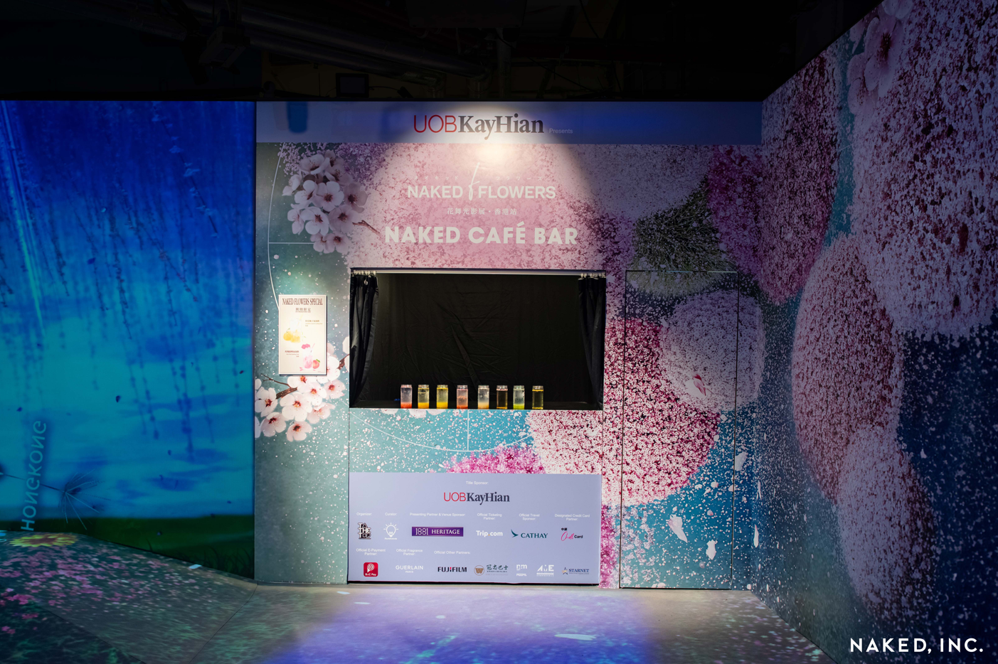 欣賞完整個展覽,大家還可以去NAKED CAFÉ BAR稍作休息,享受花果梳打和冷泡花茶。當飲品放在吧台投影位置時,影像會因應不同的飲品而綻放出相應的花卉,好飲之餘又極具觀賞性!