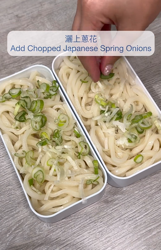 - 用醬汁撈埋烏冬,加入雞叉燒