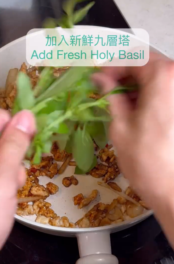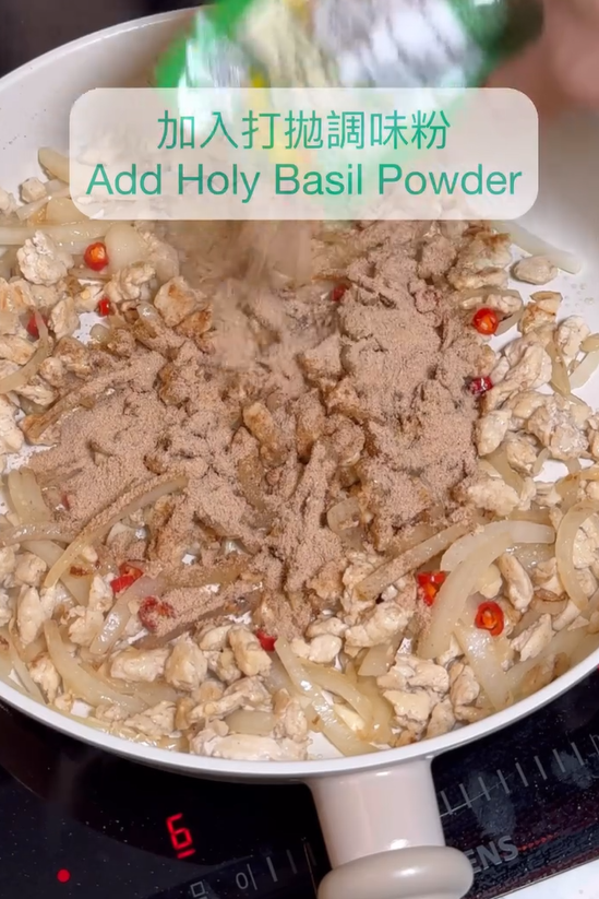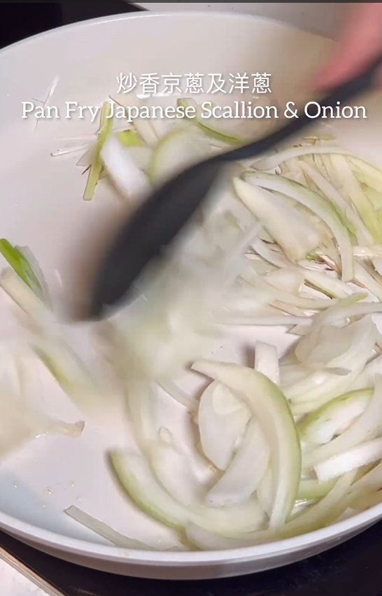 - 加入洋蔥、蒜蓉、辣椒炒香