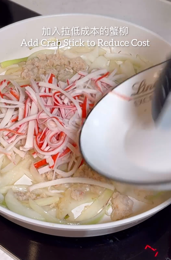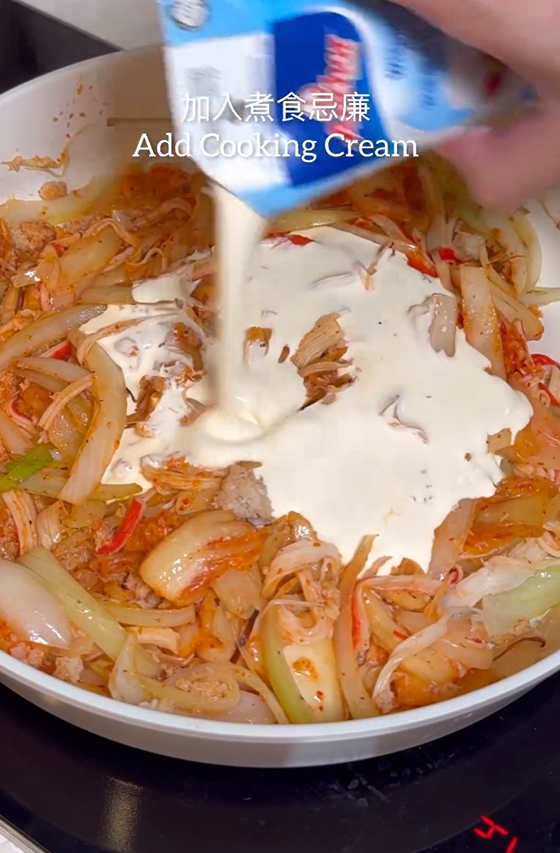 烏冬配上惹味泡菜和忌廉,馬上變得濃厚香甜又不太辣,而且用蟹肉罐頭和蟹柳煮亦十分方便。