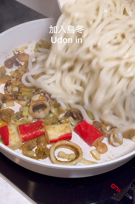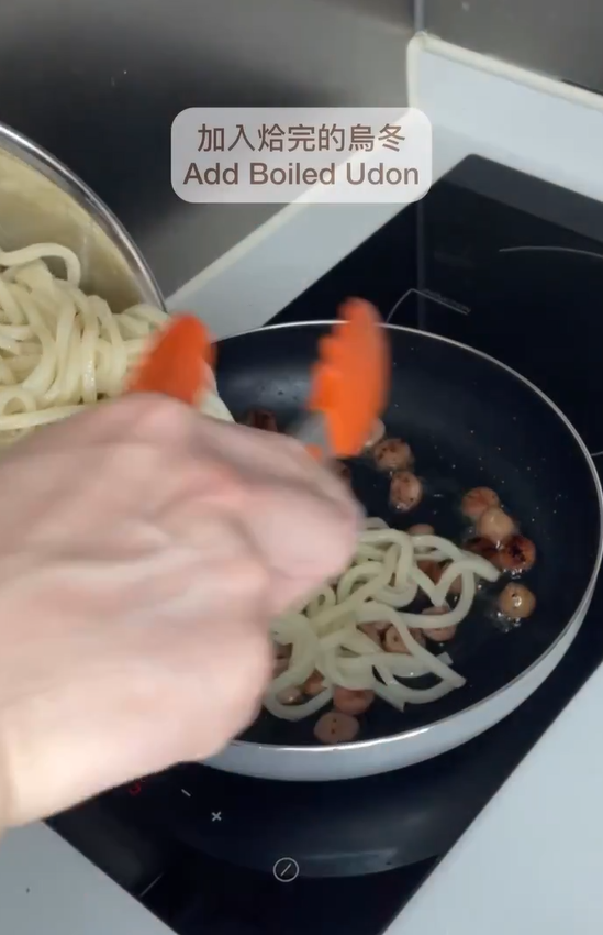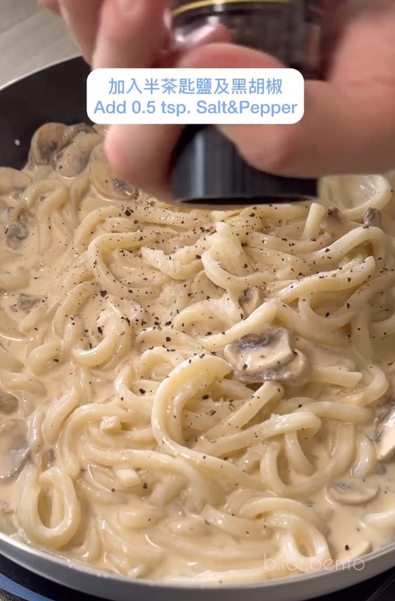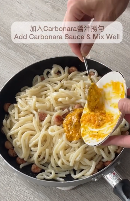 平時大多吃到卡邦尼意粉,但其實都可以煮成烏冬版本,味道鹹香好食。