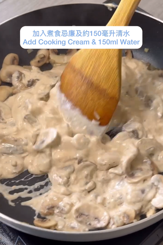 這個食譜煮法簡單方便,忌廉汁和蘑菇味道香濃惹味,小朋友最愛吃。