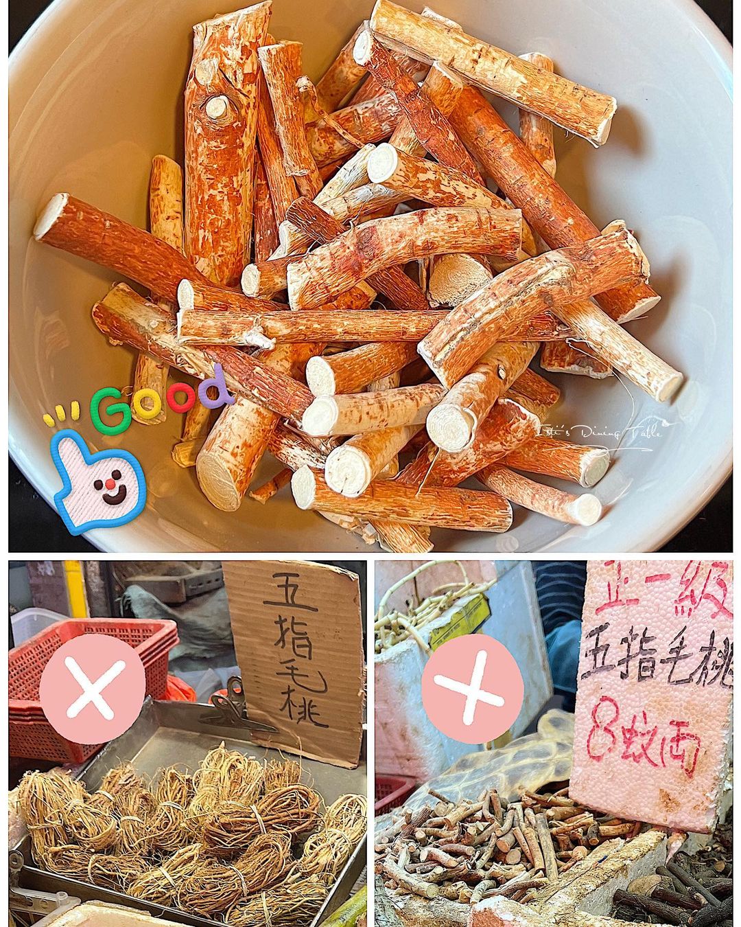 - 五指毛桃沖洗表面污垢,切段;浸水15分鐘。