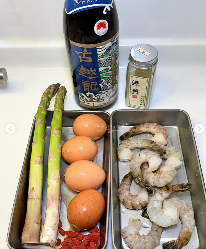蒸水蛋永遠百吃不厭,加個炒菜煲個中湯,簡簡單單又一餐!不過家常便飯都要有儀式感!學餐廳用蘆筍圍圈擺盤,健康而且上桌又吸睛,加上花雕酒,味道超香。