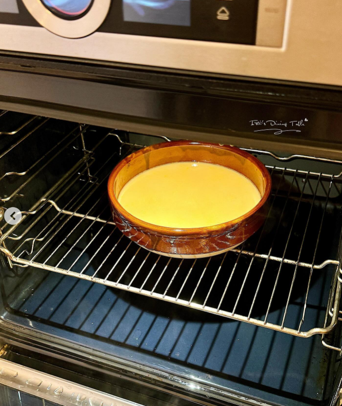- 混合蛋液和雞湯,過篩後倒入大盤,加入花雕酒;清除表面泡沫,用錫紙包好,中火蒸10分鐘