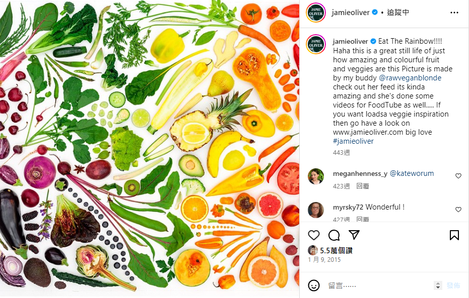 名廚Jamie Oliver彩虹飲食法建議食譜