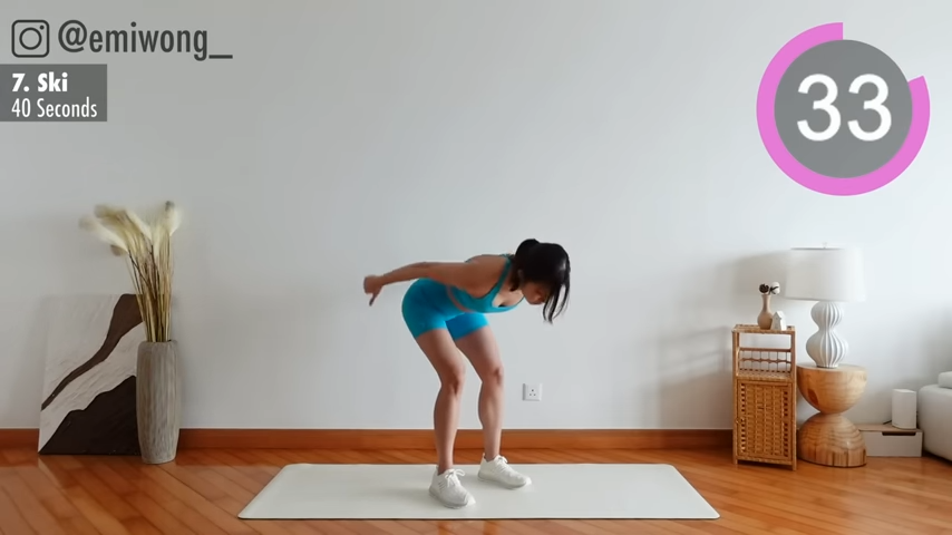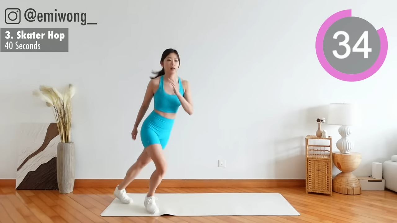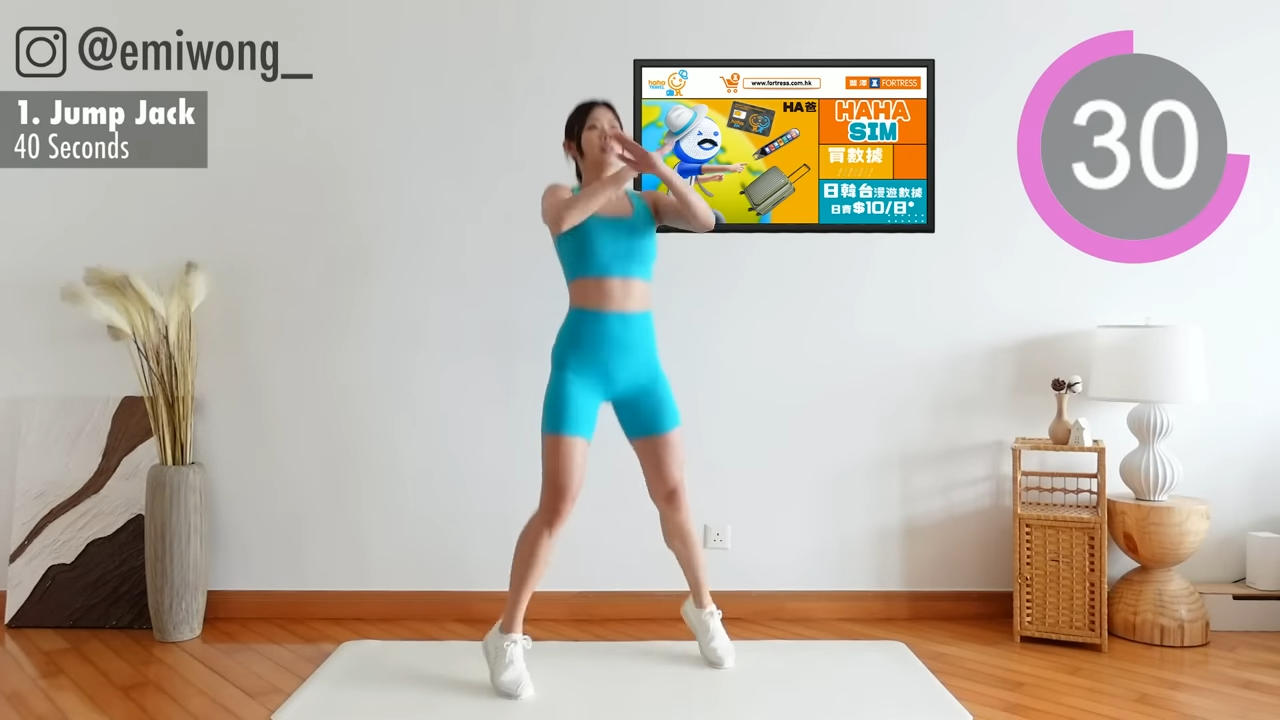 在youtube已超越600萬訂閱人數的健身達人Emi Wong,不時在社交媒體IG、Facebook及youtube頻道分享養生之道及健身教學短片,人氣高企。她最新的這套20分鐘全身爆汗HIIT高效燃脂減肥訓練,合共24組動作,每套動作做40秒,然後休息10秒,再接下套動作。只要在家中準備瑜伽墊就能進行,且不需要任何器材,在短時間做出連串密集的動作,爆汗之餘,更能全身達到燃脂效果,燃脂率更是跑步的兩倍。